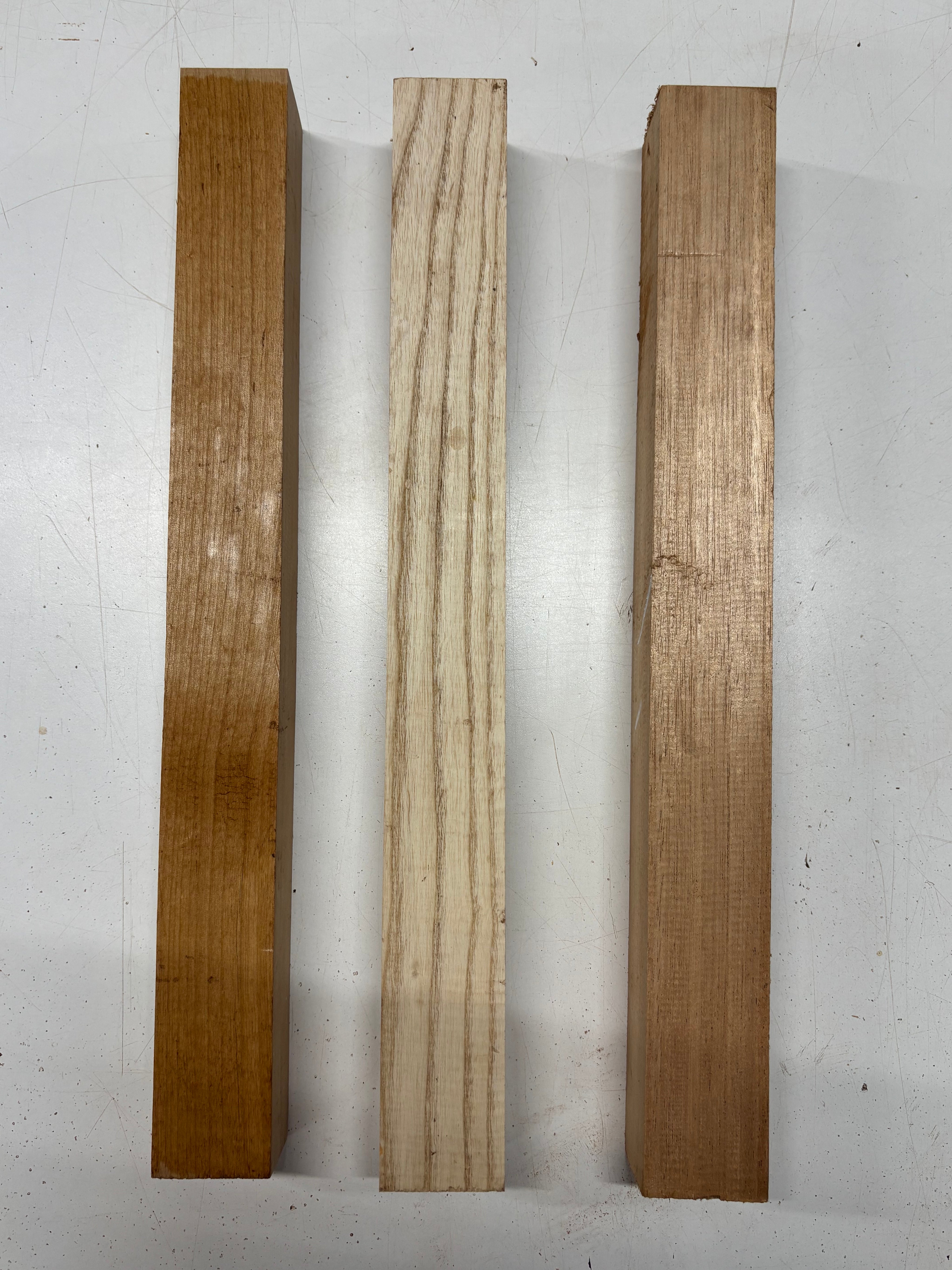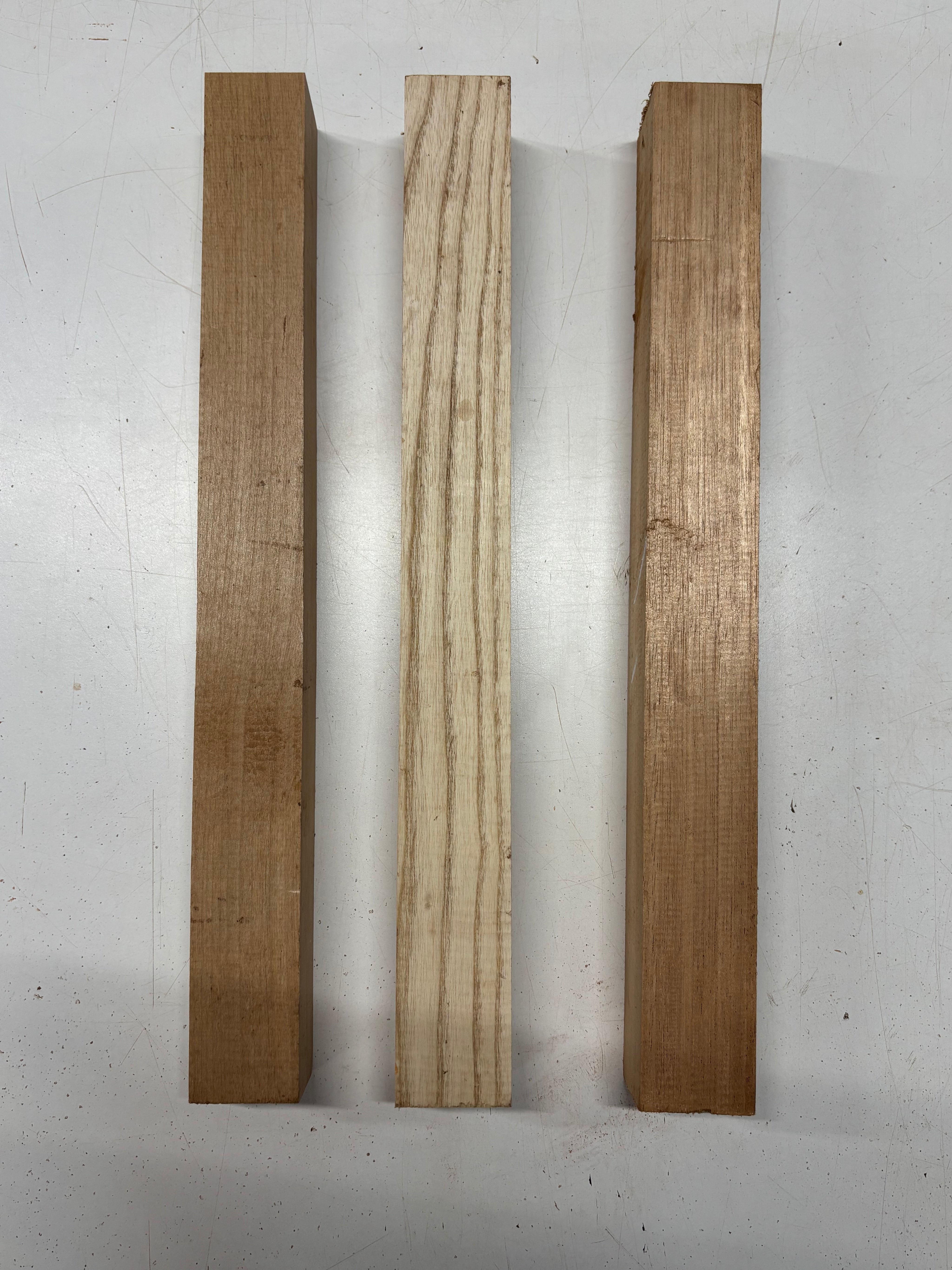 3 Pack, 3 Species African Mahogany + White Ash +Red Ader Turning Wood Blanks 18"x2"x2"#6982