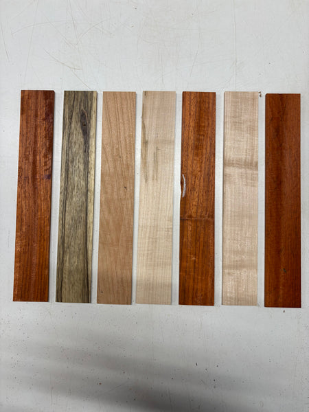 7 Pack, 4 Species Padauk + Black Limba + Cherry + Hard Maple Thin Stock Lumber 12"x1-7/8"x1/8"#6309