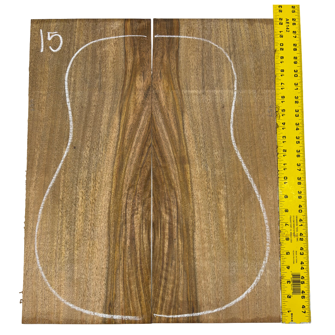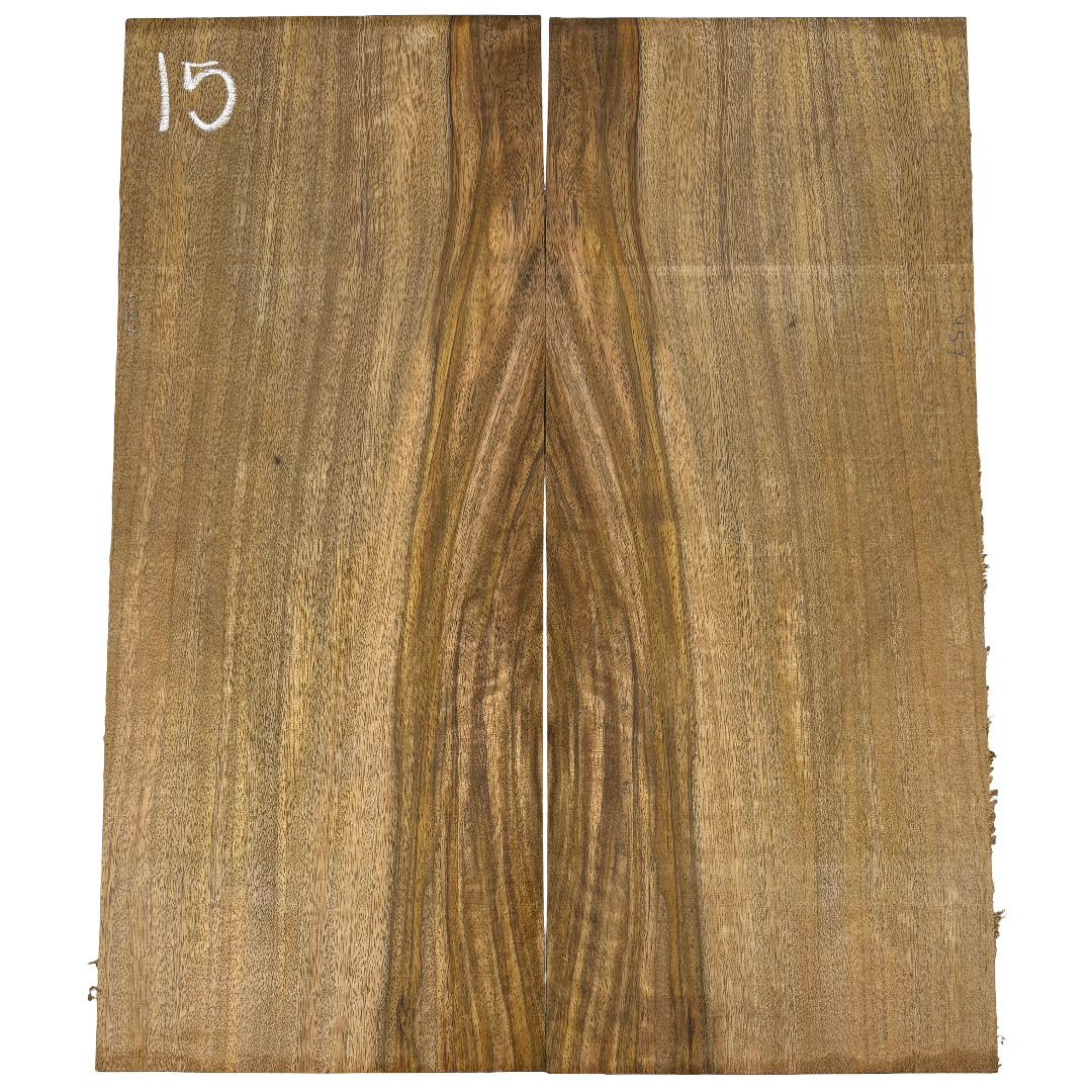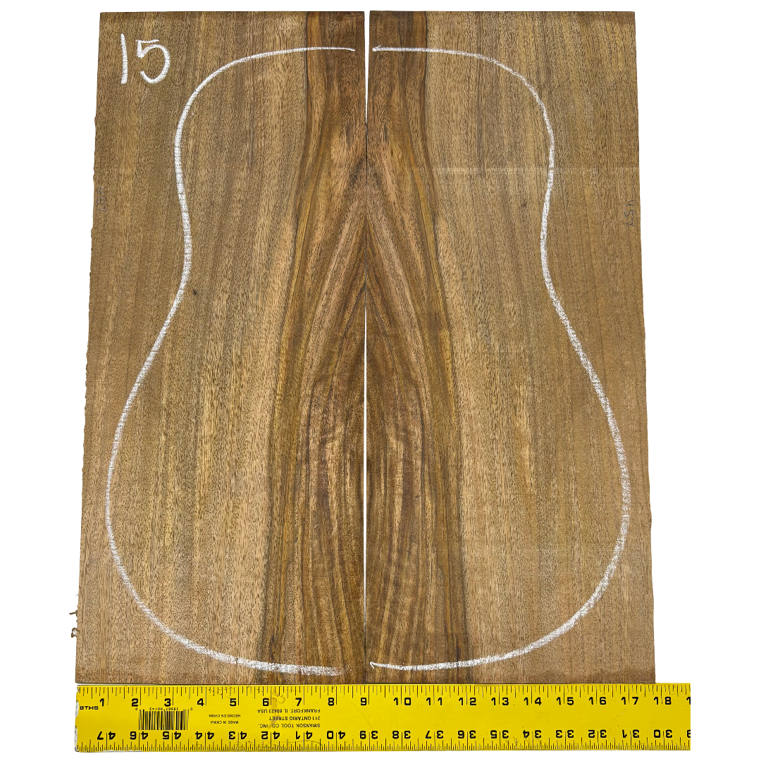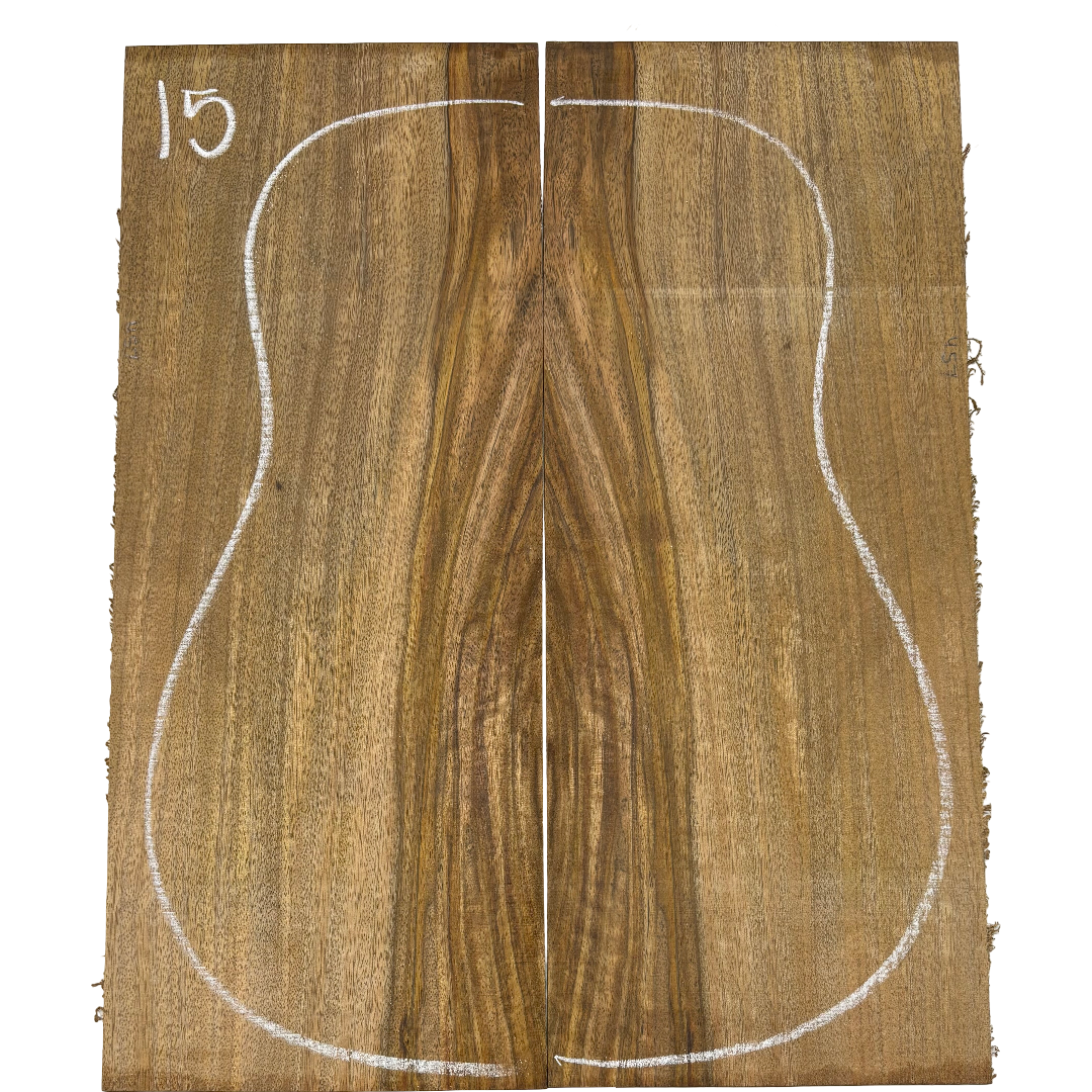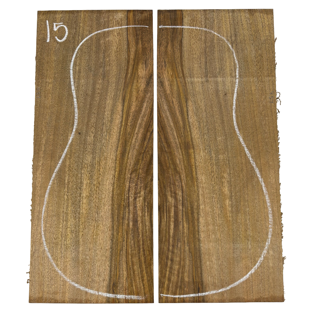 This Chocolate Mango Dreadnought Back Set showcases a rich blend of deep brown heartwood accented with lighter sapwood streaks, creating a bold and exotic look. Known for its stability and tonal warmth, Chocolate Mango offers balanced sound qualities while bringing a unique visual appeal to custom guitar builds. A rare tonewood, it’s an excellent choice for luthiers seeking both performance and character in their instruments.