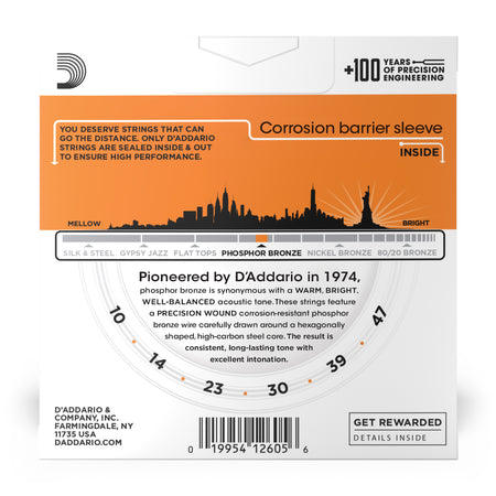 D'Addario Phosphor Bronze Wound Acoustic Guitar Strings - Extra Light (10-47)