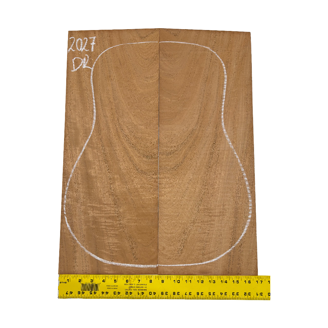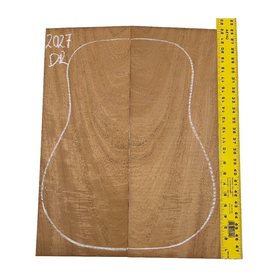 This Highly Figured Waterfall Flame Honduran Mahogany Dreadnought Guitar Back & Side Set features a stunning interlocked grain with mesmerizing waterfall flame figure that ripples beautifully across the surface. The rich reddish-brown heartwood displays golden chatoyance and depth, making each set visually striking and unique. Known for its warm, balanced tone with rich mids and smooth lows, Honduran Mahogany remains a timeless favorite for premium acoustic guitars.