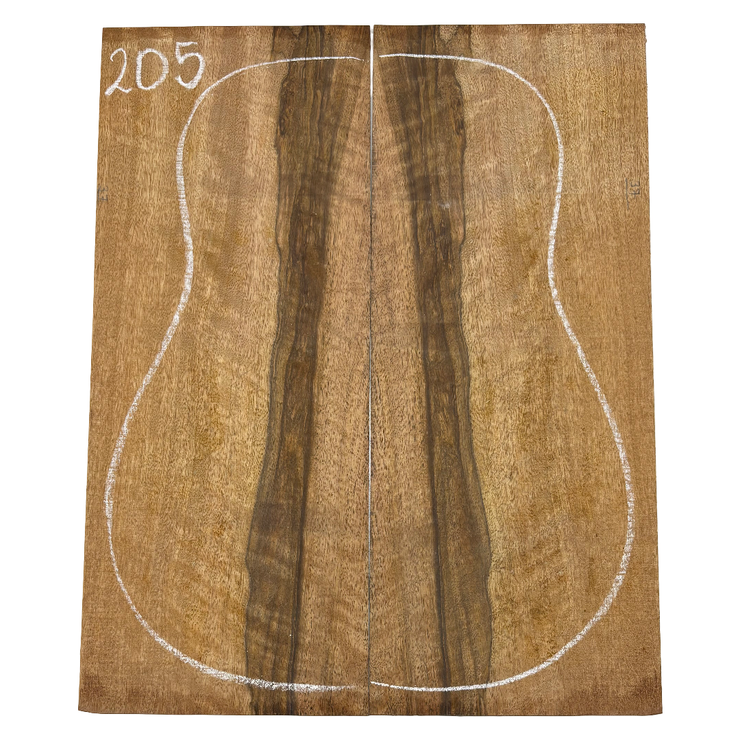 Featuring rich chocolate-brown heartwood with golden sapwood streaks and a striking flame figure, this Chocolate Mango set offers both visual beauty and warm, balanced tone. A rare exotic choice for luthiers seeking unique and durable dreadnought guitar back wood.