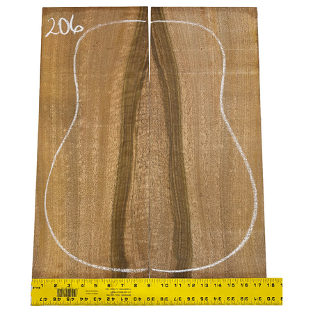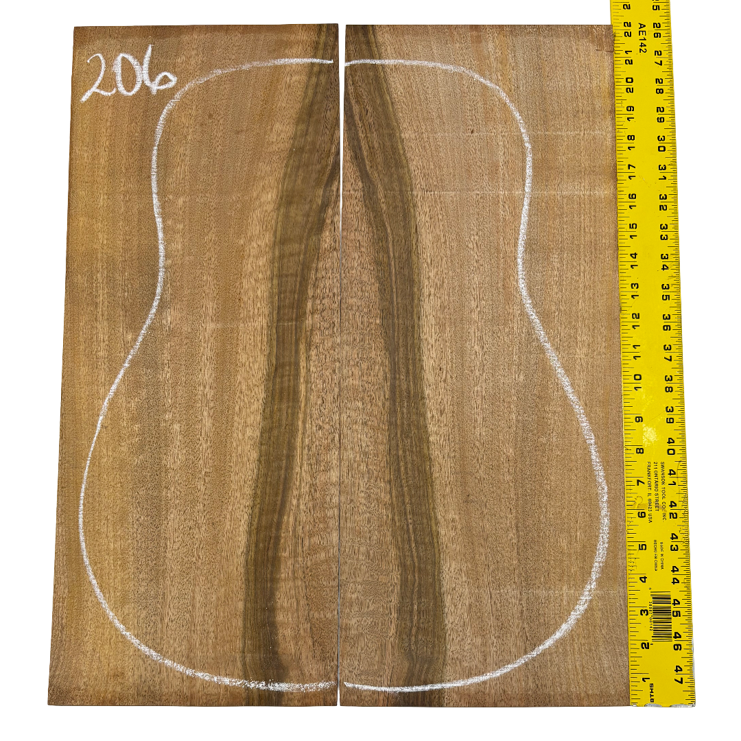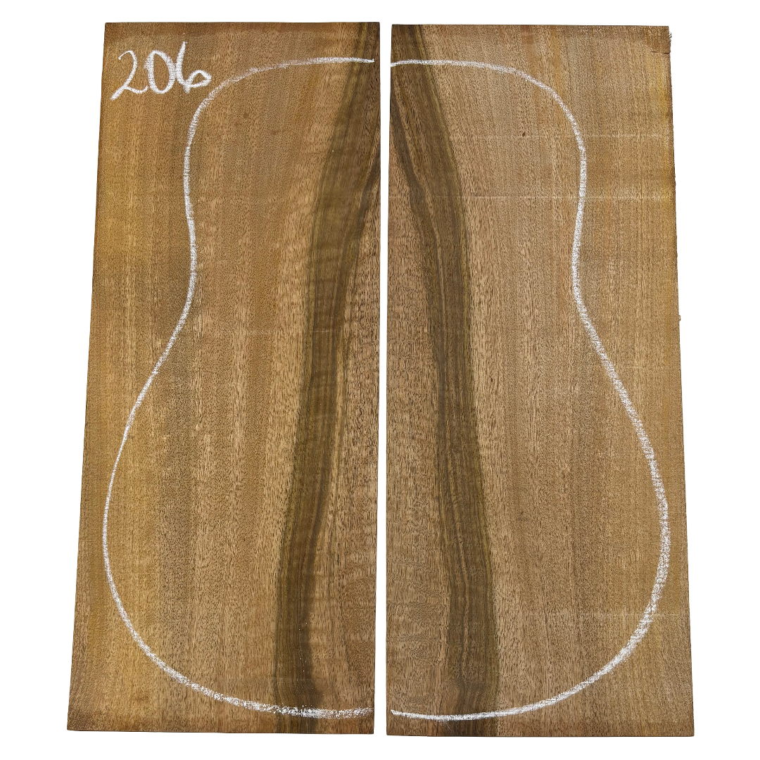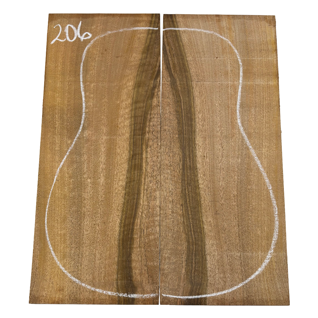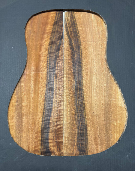 Featuring rich chocolate-brown heartwood with golden sapwood streaks and a striking flame figure, this Chocolate Mango set offers both visual beauty and warm, balanced tone. A rare exotic choice for luthiers seeking unique and durable dreadnought guitar back wood.