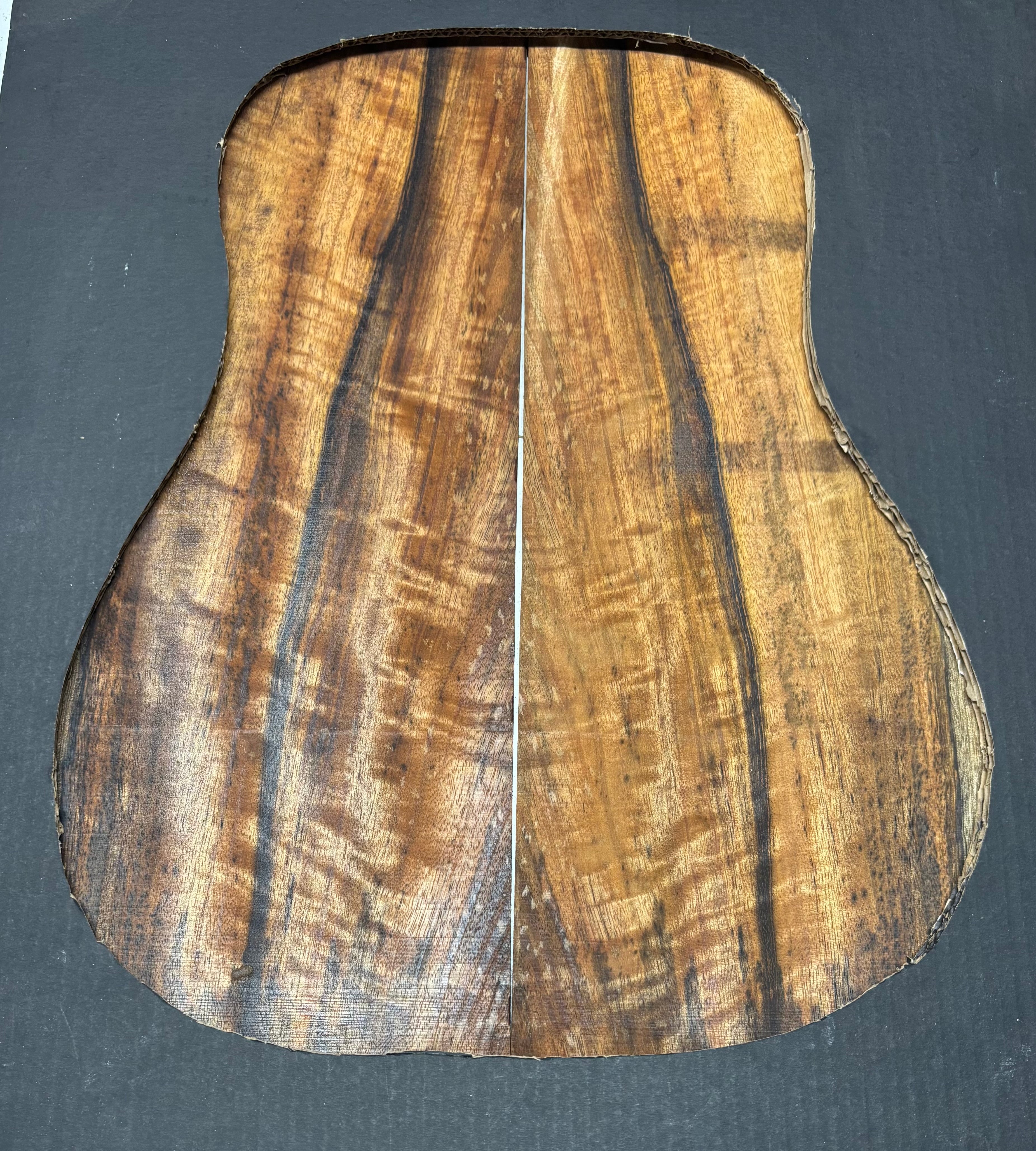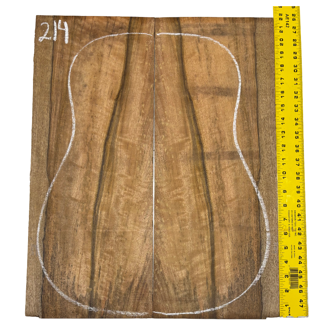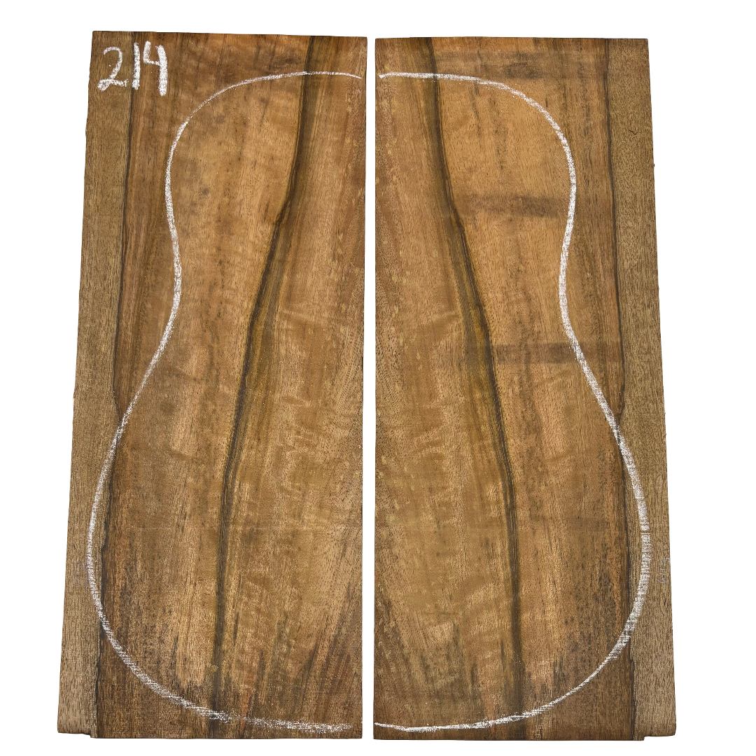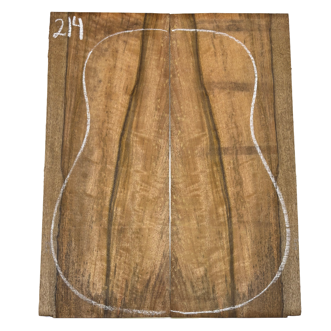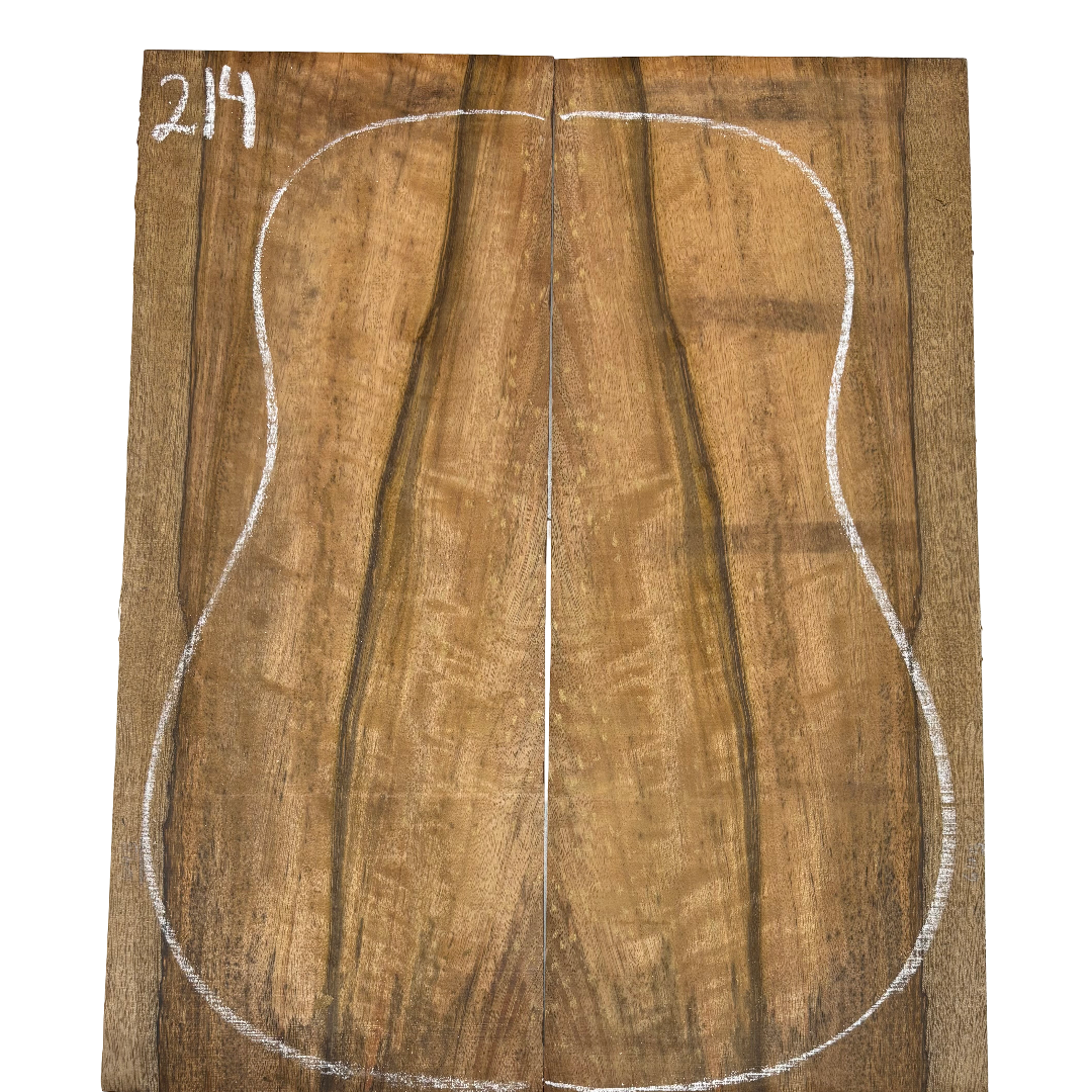 Featuring rich chocolate-brown heartwood with golden sapwood streaks and a striking flame figure, this Chocolate Mango set offers both visual beauty and warm, balanced tone. A rare exotic choice for luthiers seeking unique and durable dreadnought guitar back wood.