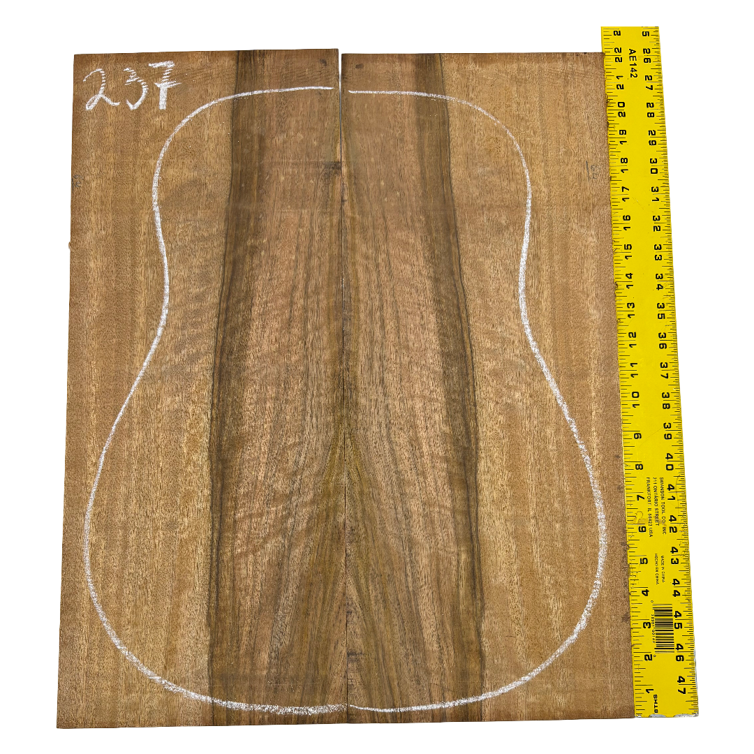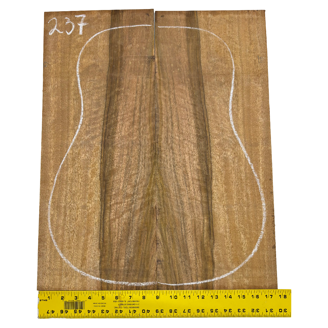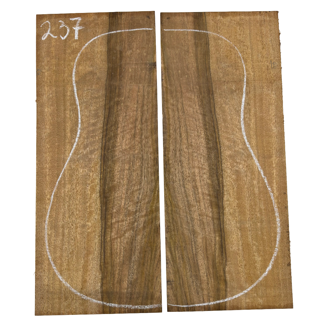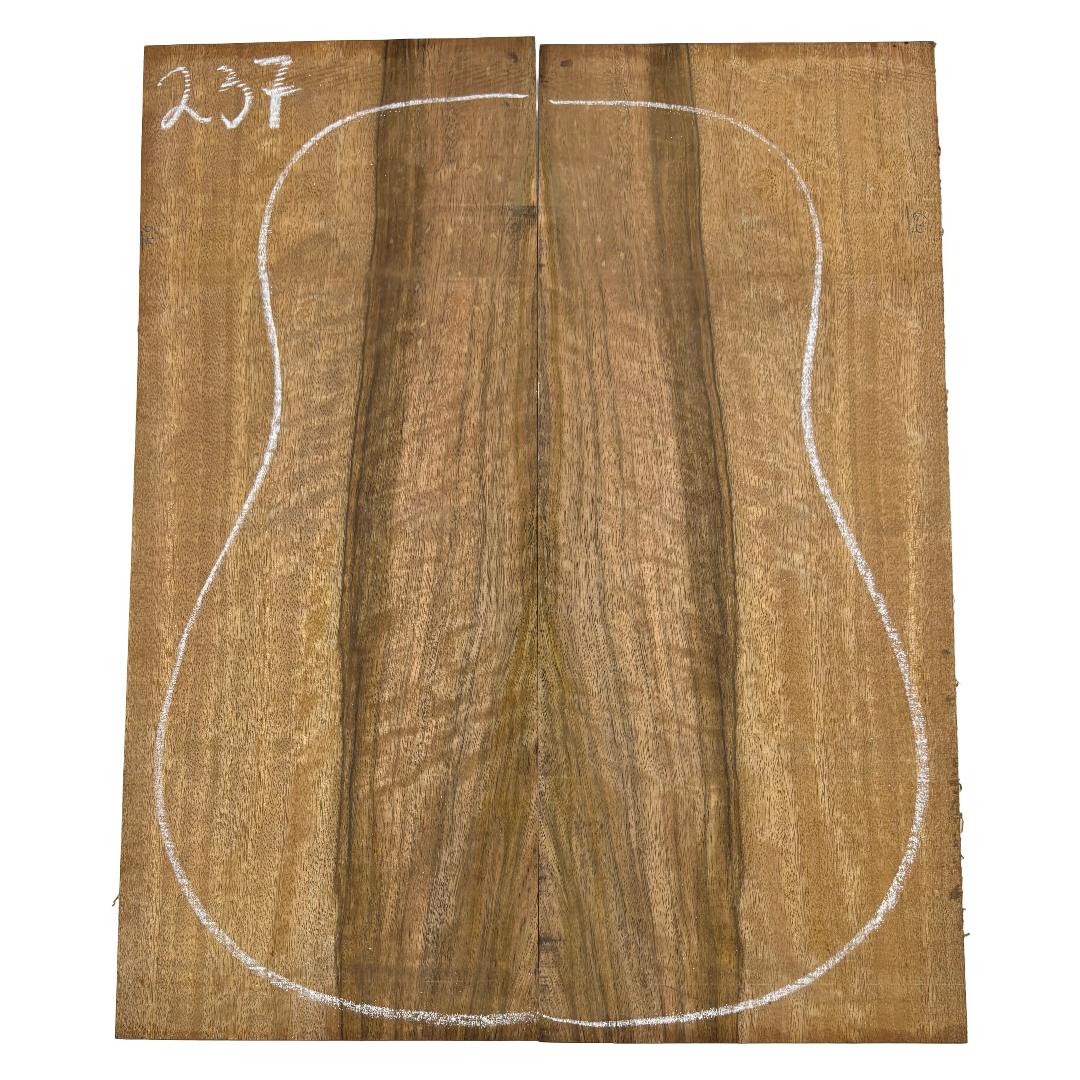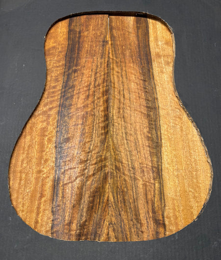 Featuring rich chocolate-brown heartwood with golden sapwood streaks and a striking flame figure, this Chocolate Mango set offers both visual beauty and warm, balanced tone. A rare exotic choice for luthiers seeking unique and durable dreadnought guitar back wood.