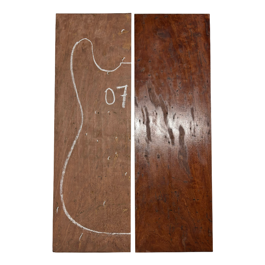 Elevate your guitar with this Flame Sydney Red Gum Burl Drop Top, prized for its fiery figuring and dramatic burl character. The deep reddish tones, interlaced with swirling grain and natural flame highlights, create a truly one-of-a-kind top that rivals the most exotic tonewoods. Perfect for both electric and acoustic builds, this premium piece combines striking visual appeal with excellent tonal qualities.