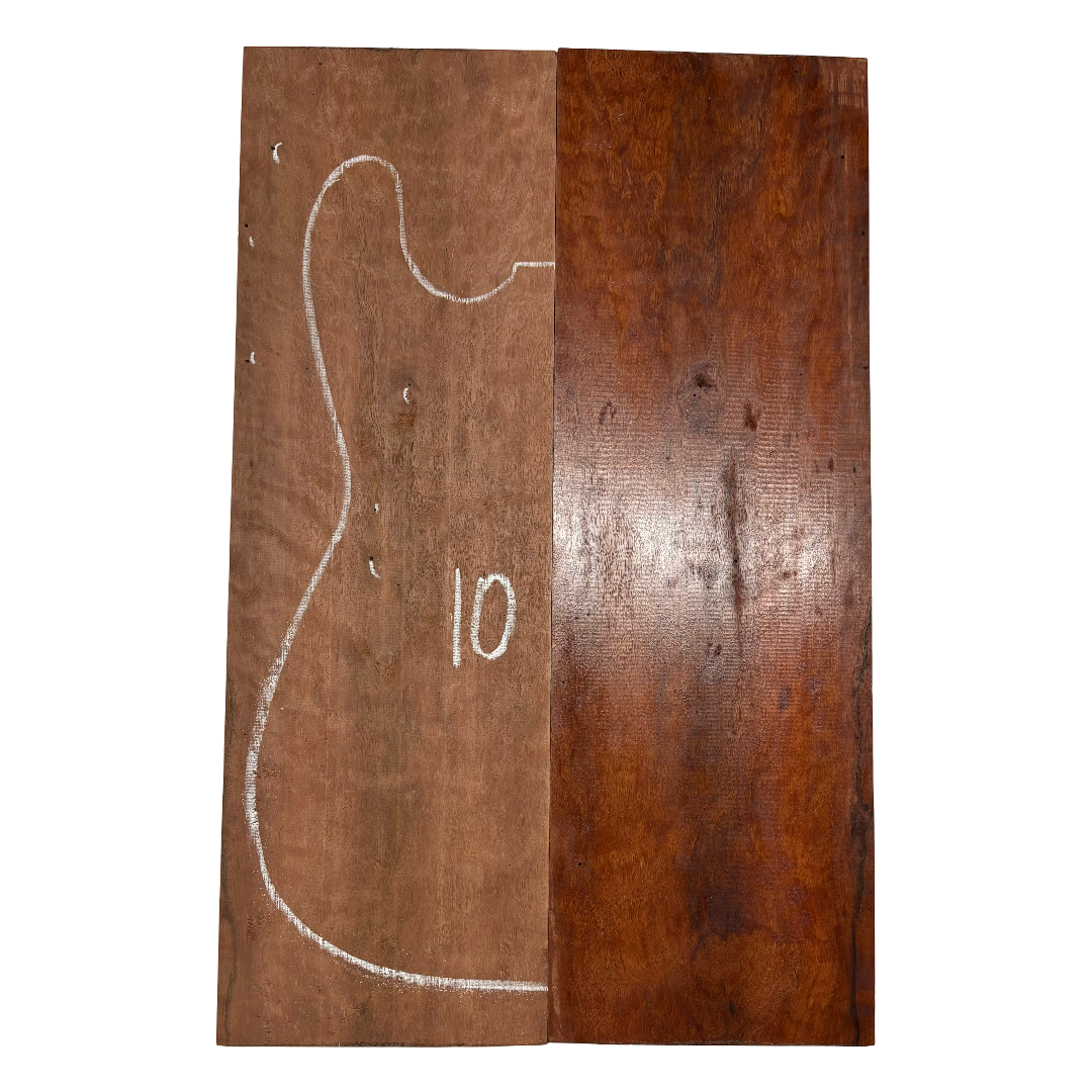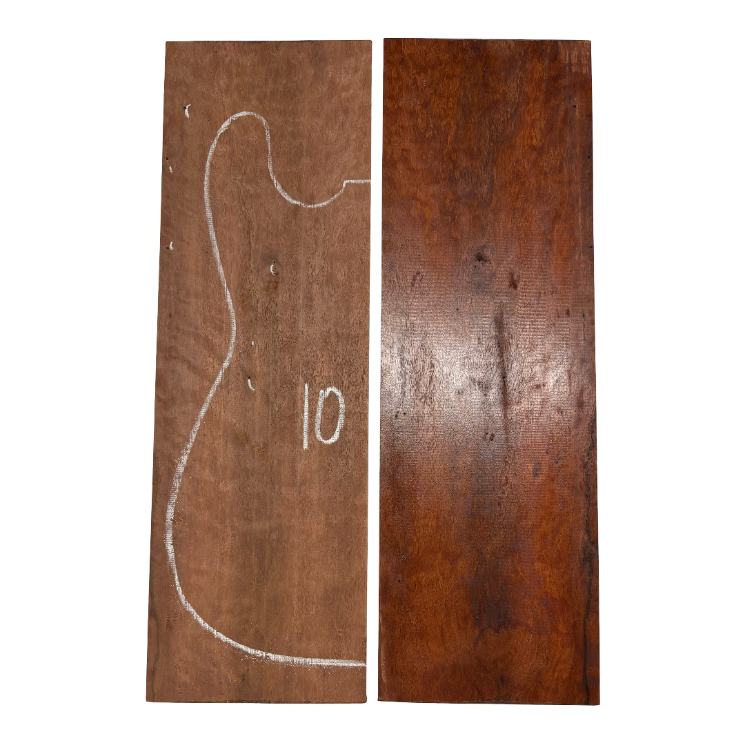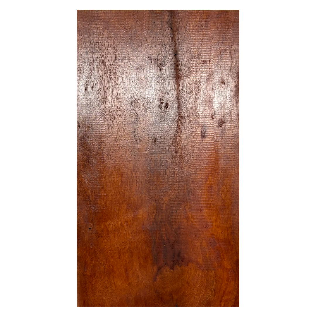 Elevate your guitar with this Flame Sydney Red Gum Burl Drop Top, prized for its fiery figuring and dramatic burl character. The deep reddish tones, interlaced with swirling grain and natural flame highlights, create a truly one-of-a-kind top that rivals the most exotic tonewoods. Perfect for both electric and acoustic builds, this premium piece combines striking visual appeal with excellent tonal qualities.