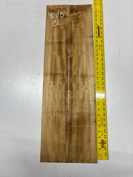 This Golden Flame Acacia Classical Guitar Back & Side Set features warm honey-brown tones with vivid flame figure that shifts beautifully in the light. Known for its balanced, clear voice and quick response, Acacia offers a tonal character similar to Hawaiian Koa with added warmth and sweetness. Ideal for luthiers crafting visually expressive and resonant classical guitars.