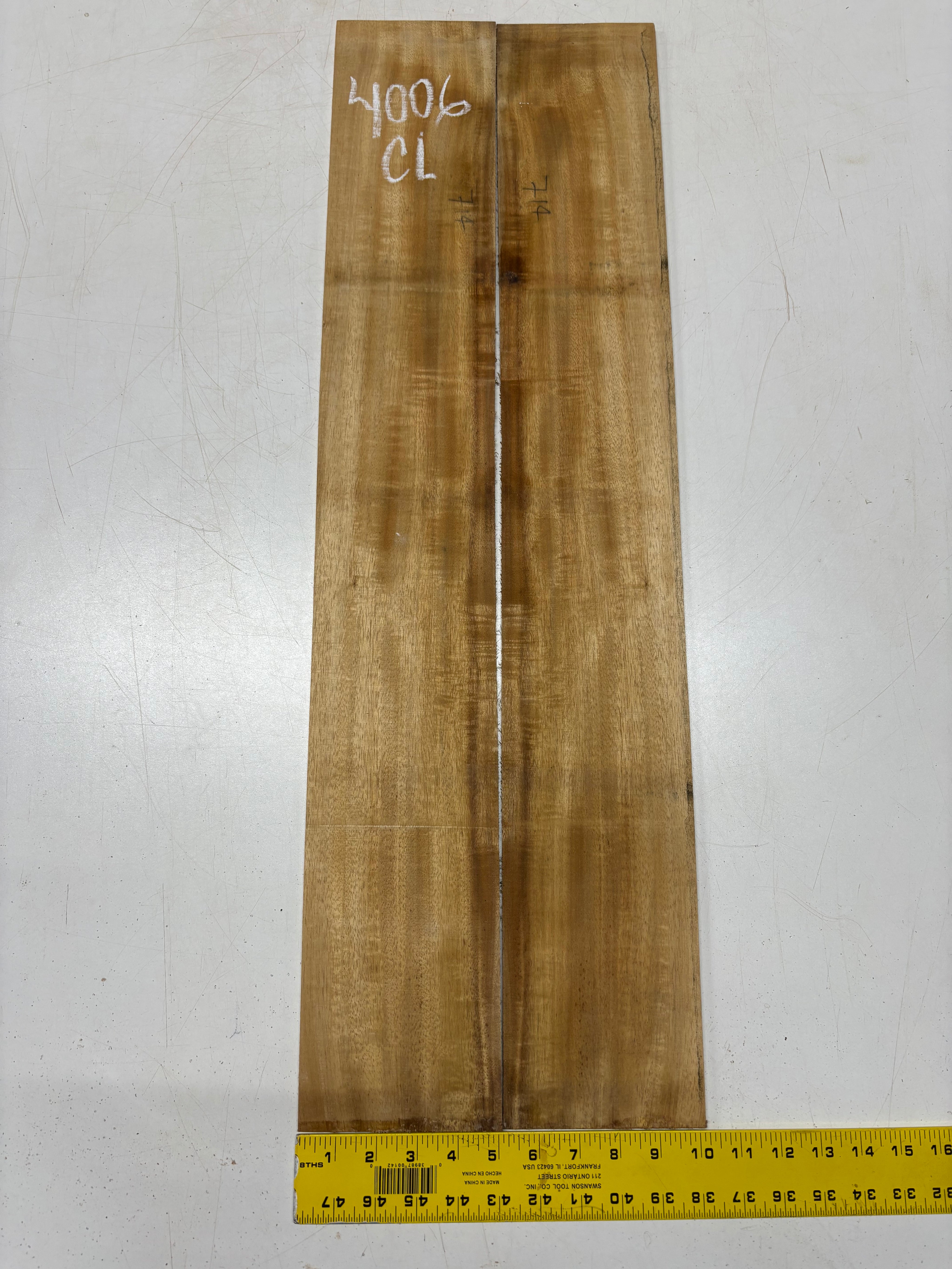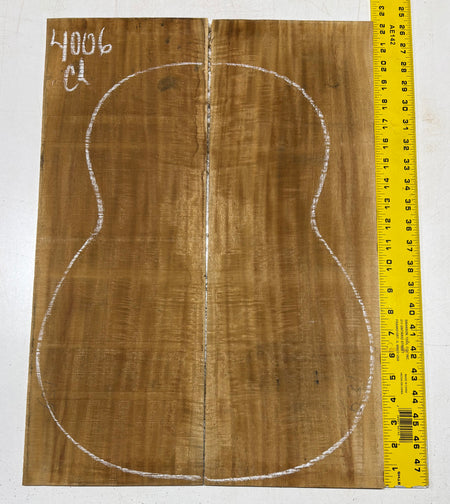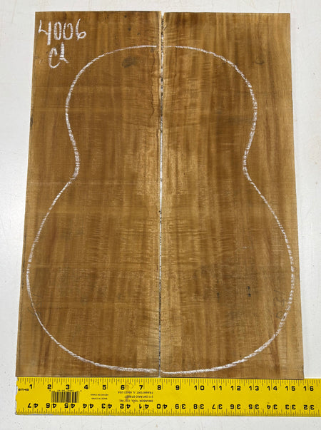 This Golden Flame Acacia Classical Guitar Back & Side Set features warm honey-brown tones with vivid flame figure that shifts beautifully in the light. Known for its balanced, clear voice and quick response, Acacia offers a tonal character similar to Hawaiian Koa with added warmth and sweetness. Ideal for luthiers crafting visually expressive and resonant classical guitars.