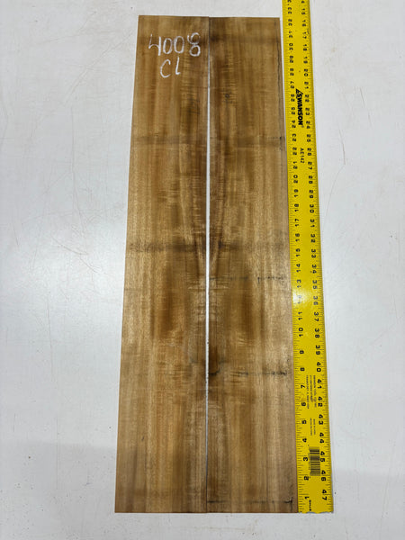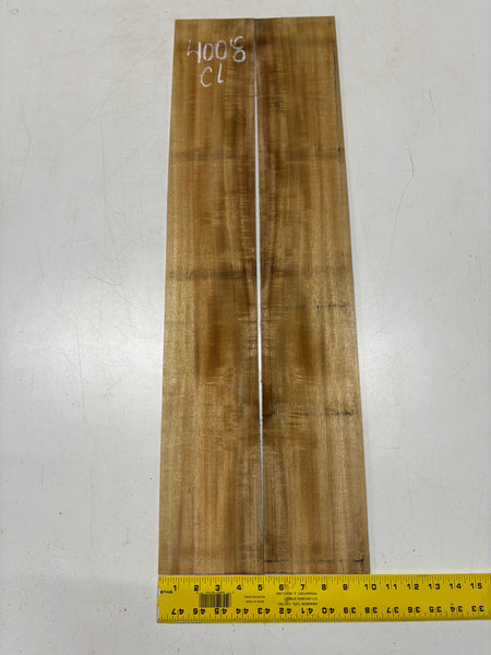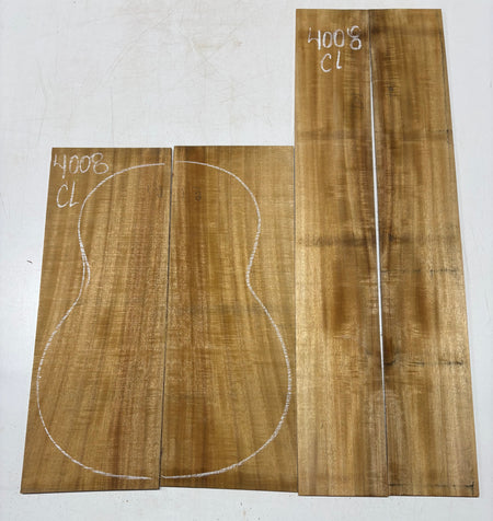 This Golden Flame Acacia Classical Guitar Back & Side Set features warm honey-brown tones with vivid flame figure that shifts beautifully in the light. Known for its balanced, clear voice and quick response, Acacia offers a tonal character similar to Hawaiian Koa with added warmth and sweetness. Ideal for luthiers crafting visually expressive and resonant classical guitars.