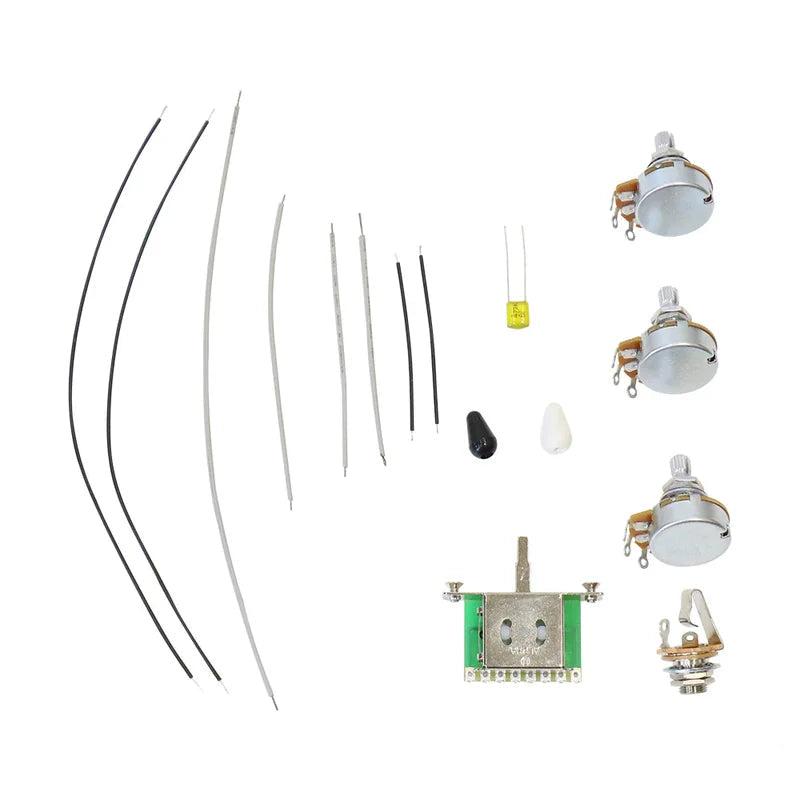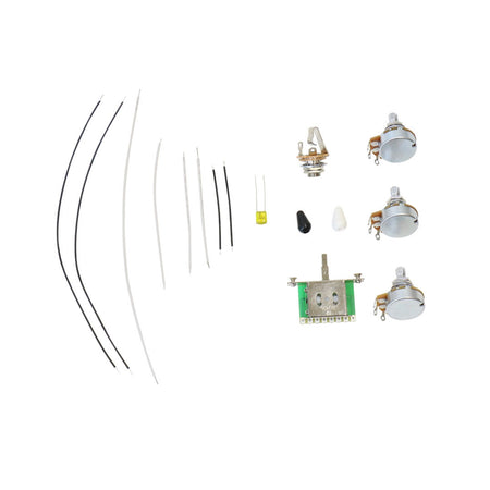 Note: This kit contains all electronic components needed to rewire a Stratocaster style guitar. Professional installation recommended for those unfamiliar with guitar electronics.