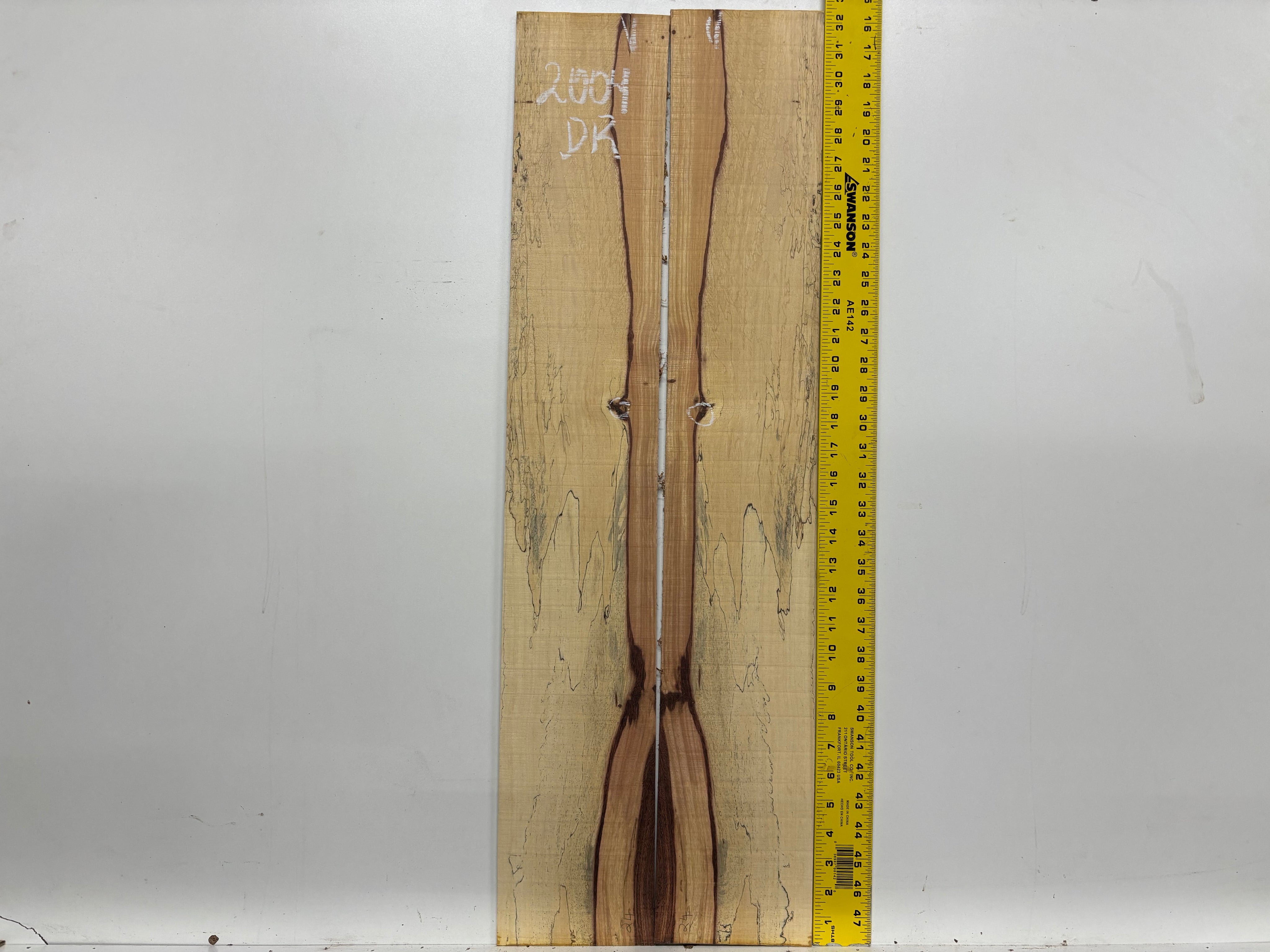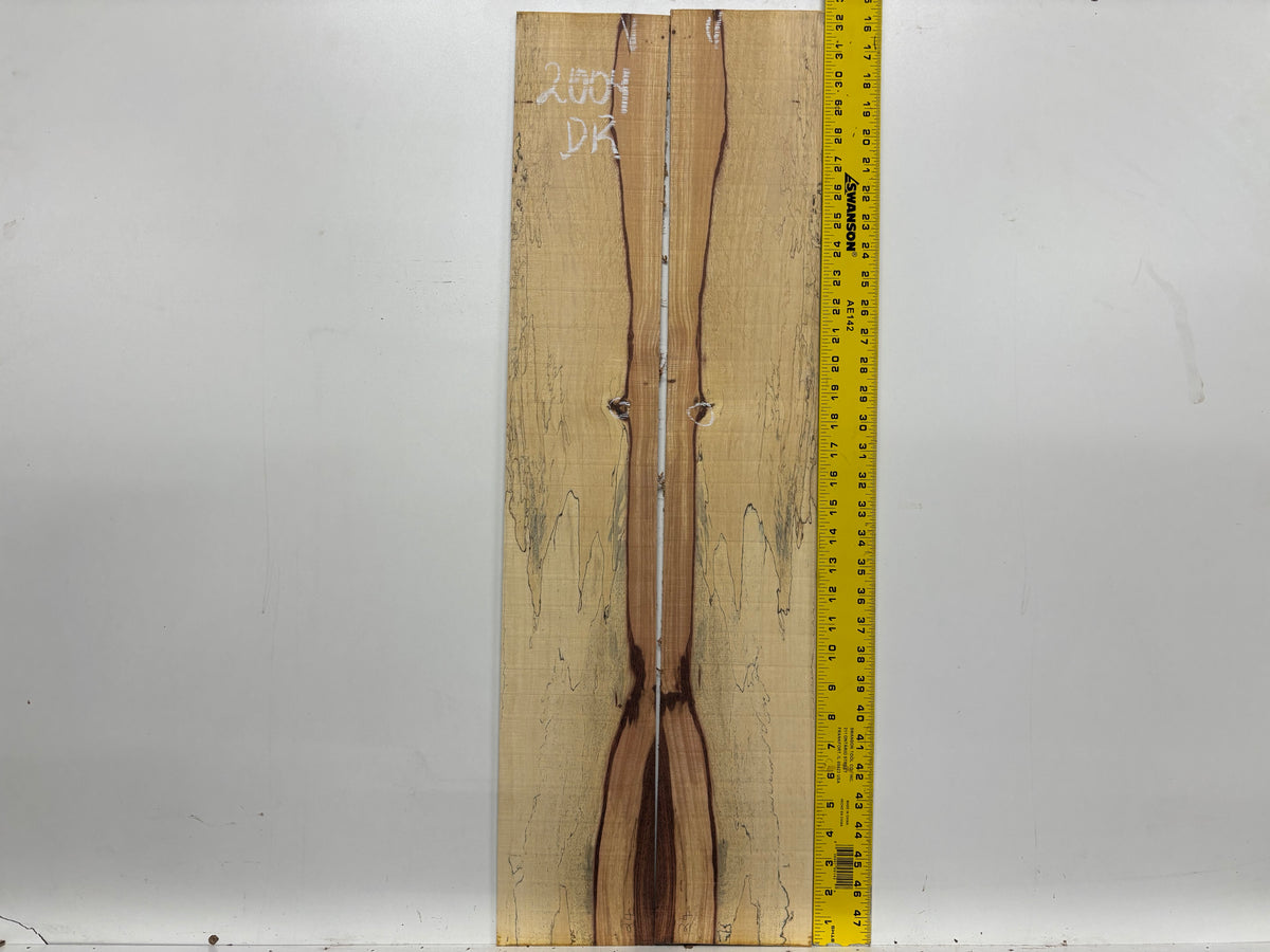 • Color: Golden-brown with rich reddish-brown vertical striping and darker spalting near the edges.