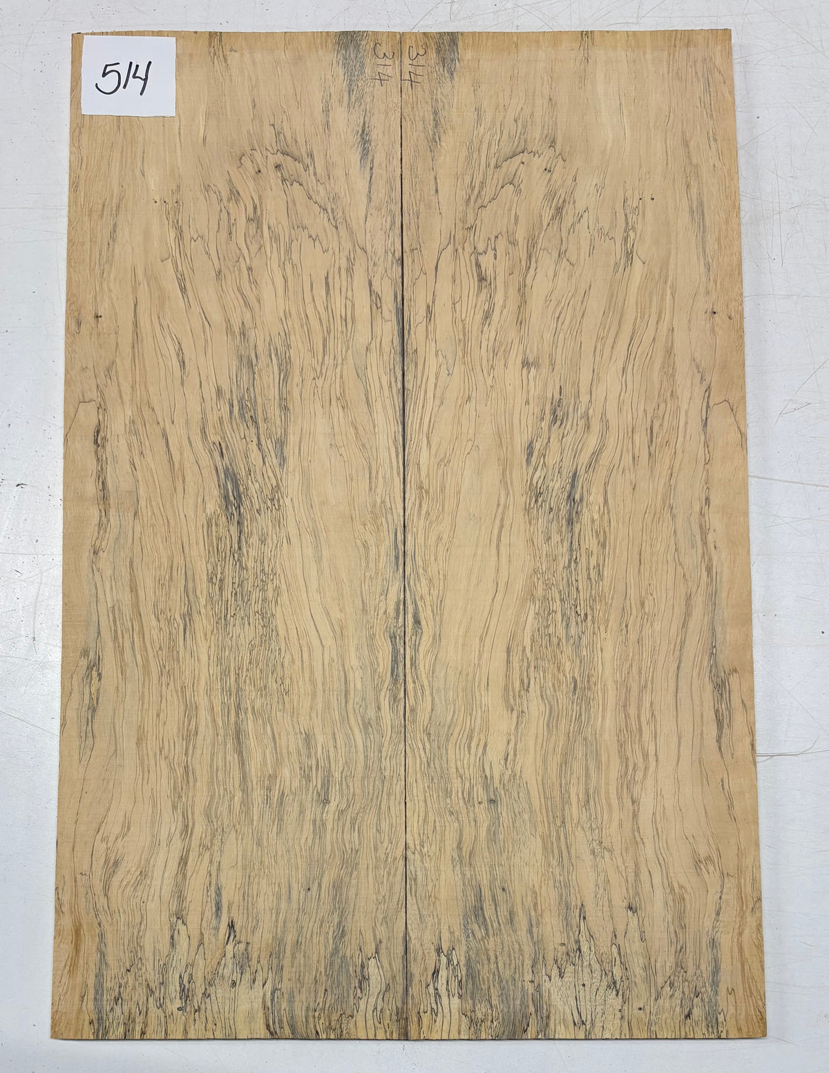 • Grain & Color: Pale golden-beige base with dramatic black spalting lines and streaks, forming intricate, web-like grain patterns.