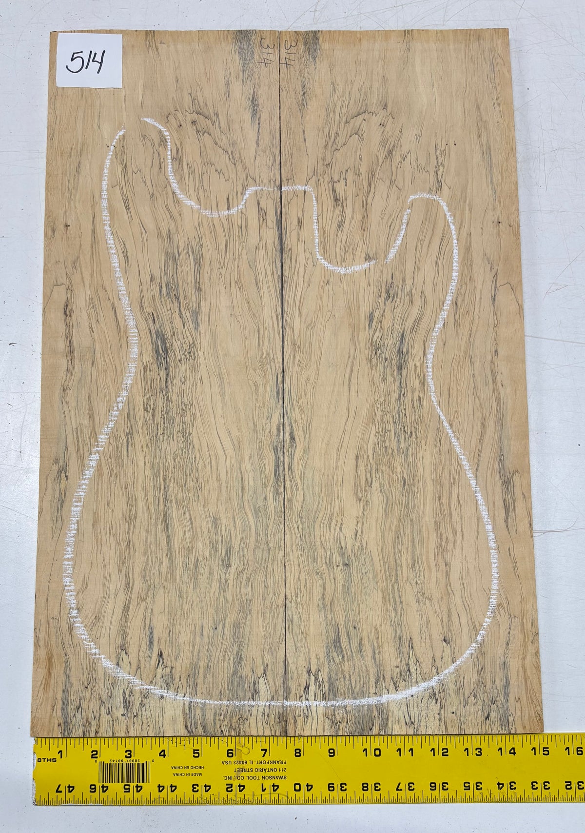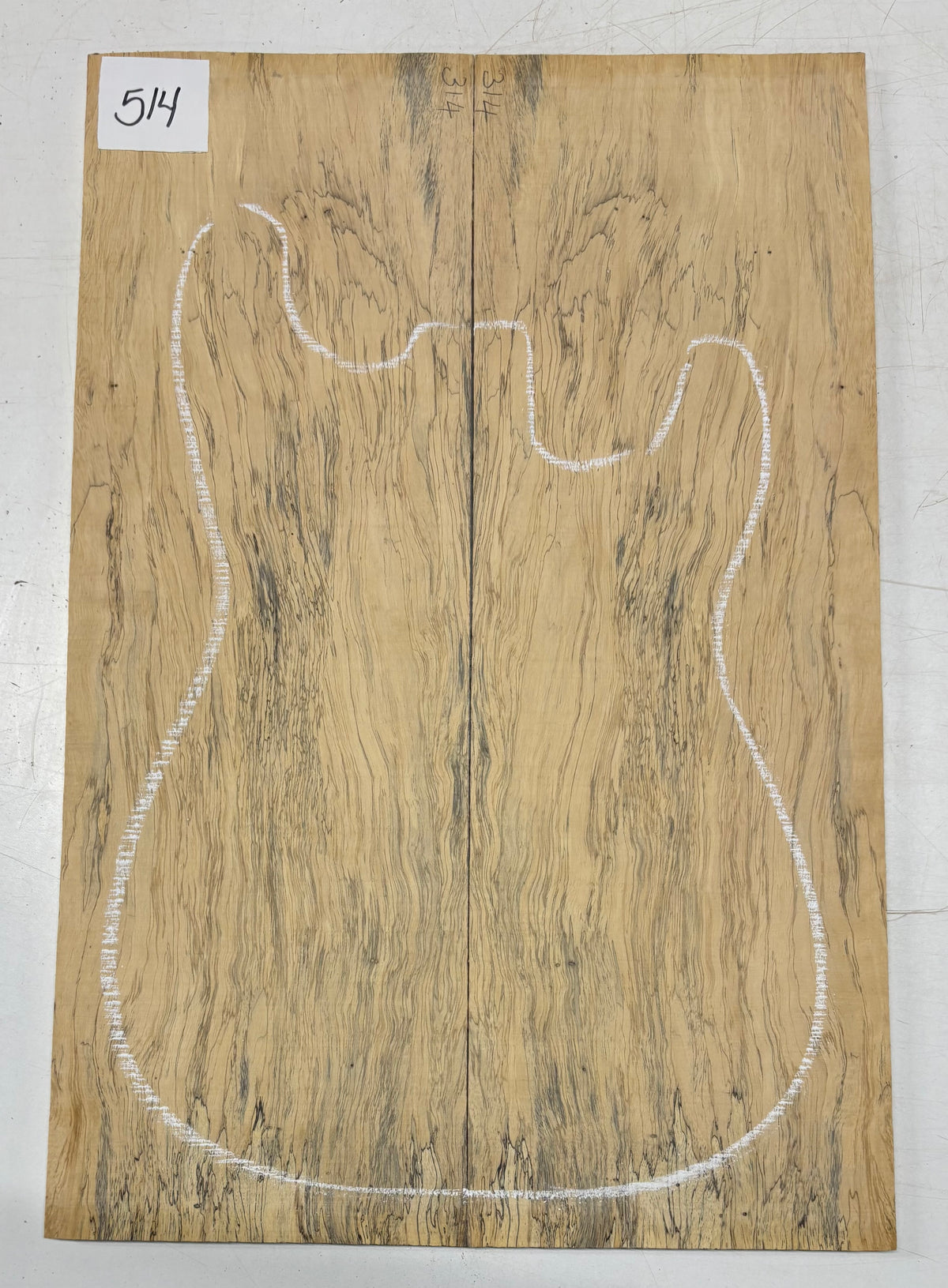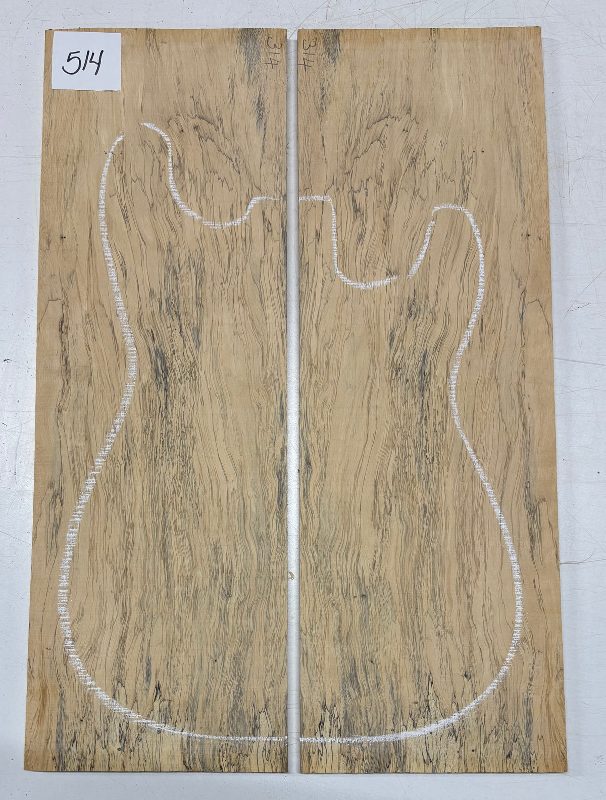 Turn heads with this stunning Spalted Tamarind Drop Top, a rare and exotic bookmatched set that showcases nature's artwork in bold, expressive grain. The creamy blonde base is streaked with dramatic gray and black spalting, creating a marbled, flame-like centerpiece down the middle—ideal for a statement electric or acoustic guitar top. This set offers a blend of visual impact and excellent workability.