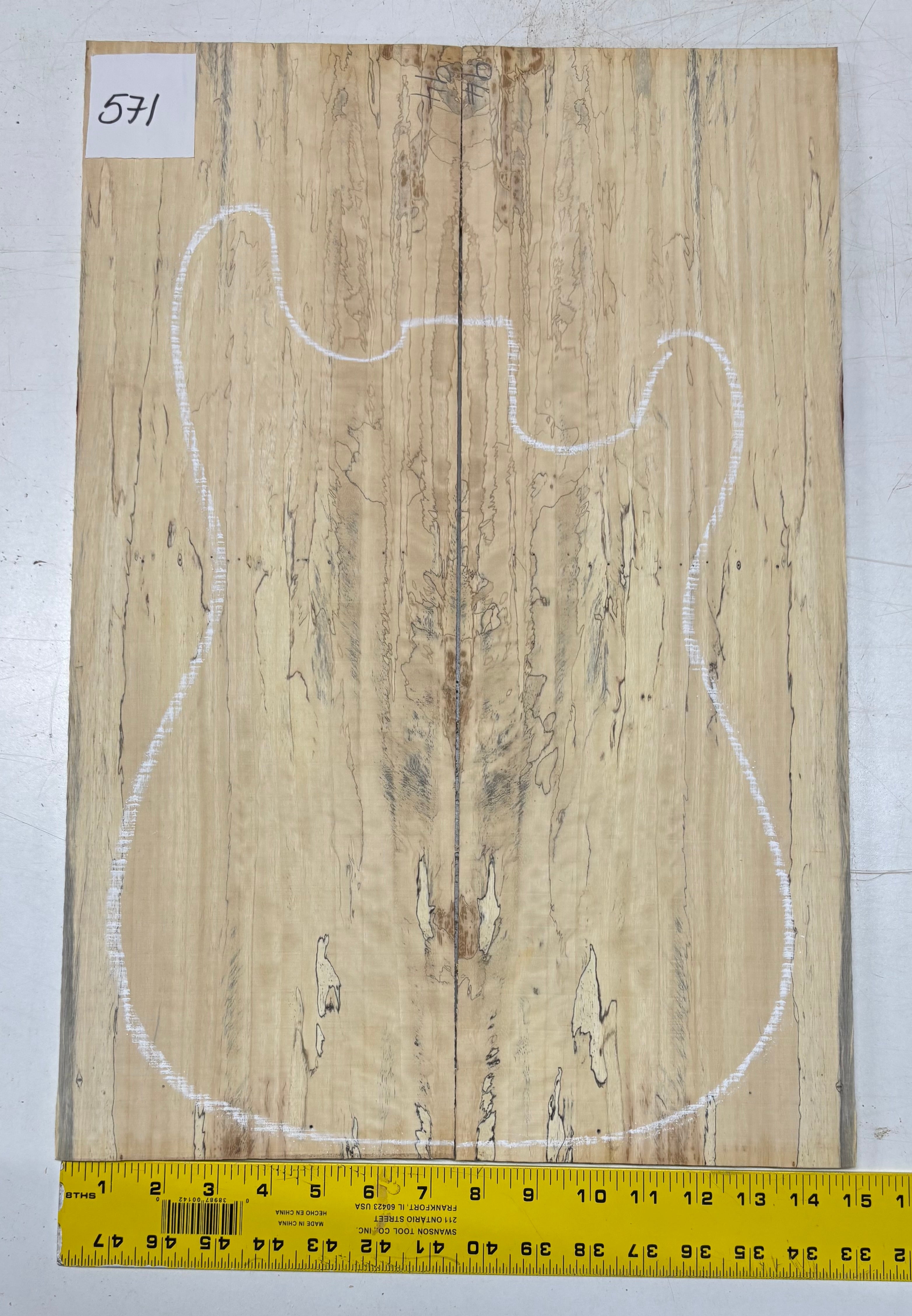 Spalted Tamarind Guitar Drop Top 22" x 7-3/8" x 3/8" #571