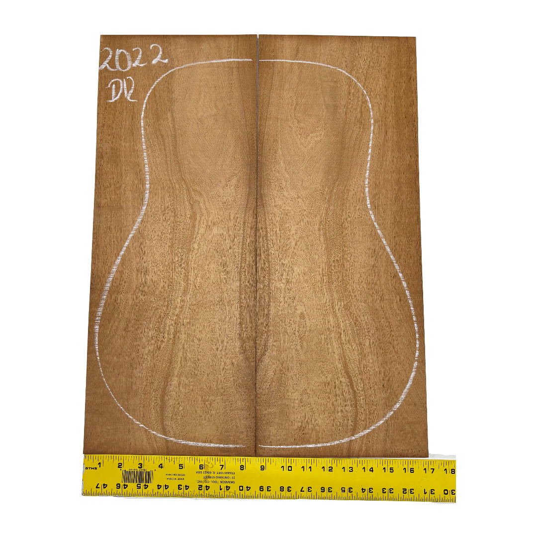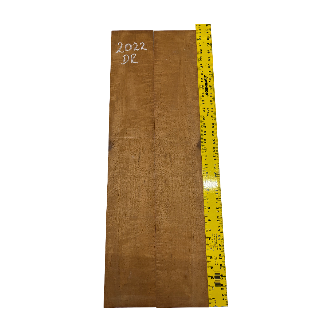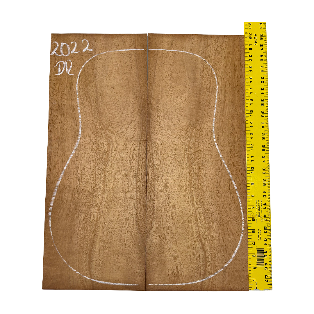 This Highly Figured Waterfall Flame Honduran Mahogany Dreadnought Guitar Back & Side Set features a stunning interlocked grain with mesmerizing waterfall flame figure that ripples beautifully across the surface. The rich reddish-brown heartwood displays golden chatoyance and depth, making each set visually striking and unique. Known for its warm, balanced tone with rich mids and smooth lows, Honduran Mahogany remains a timeless favorite for premium acoustic guitars.
