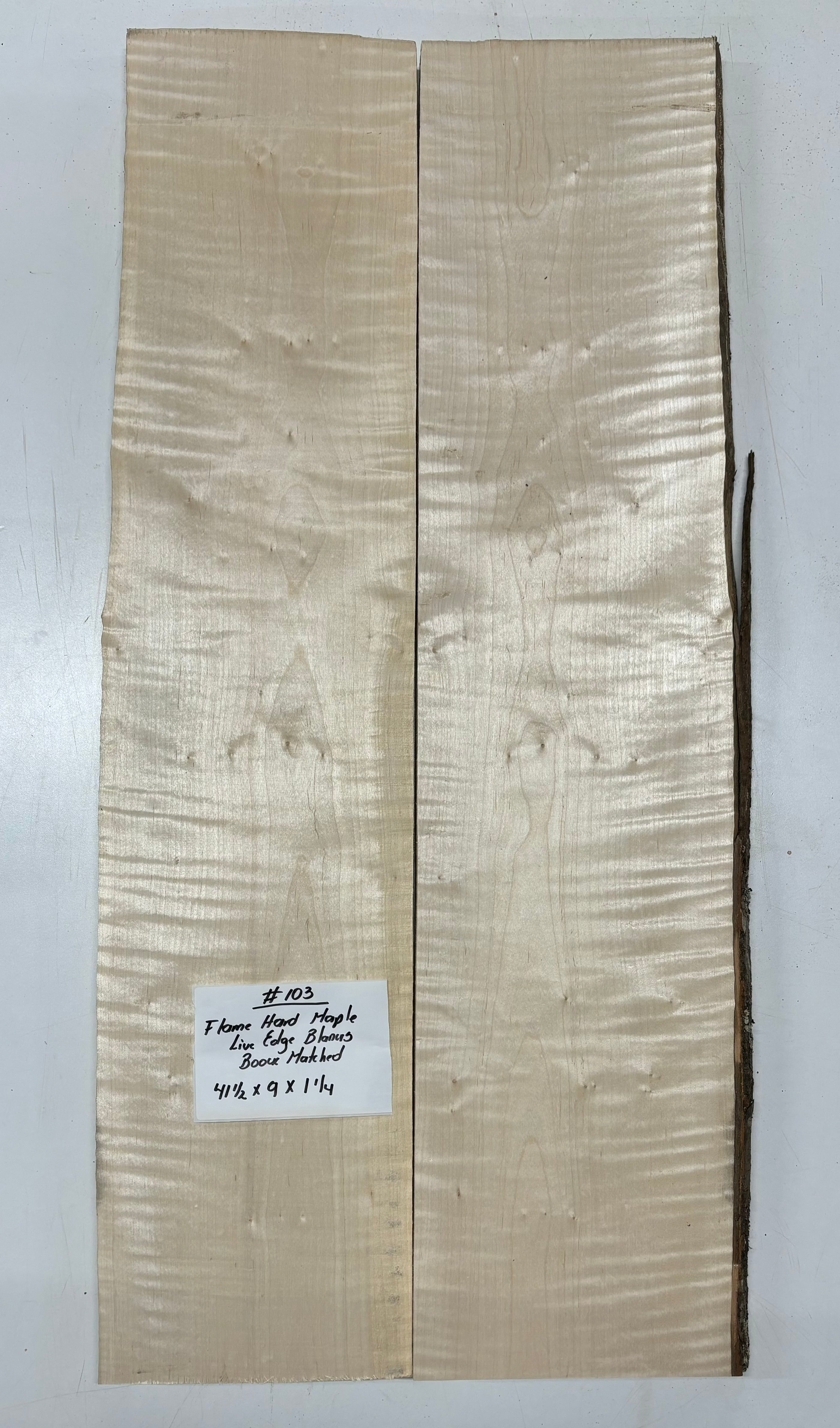 Flame Hard Maple Lumber Live Edge Slab (bookmatched)- 41-1/2"x 9"x 1-1/4" #103