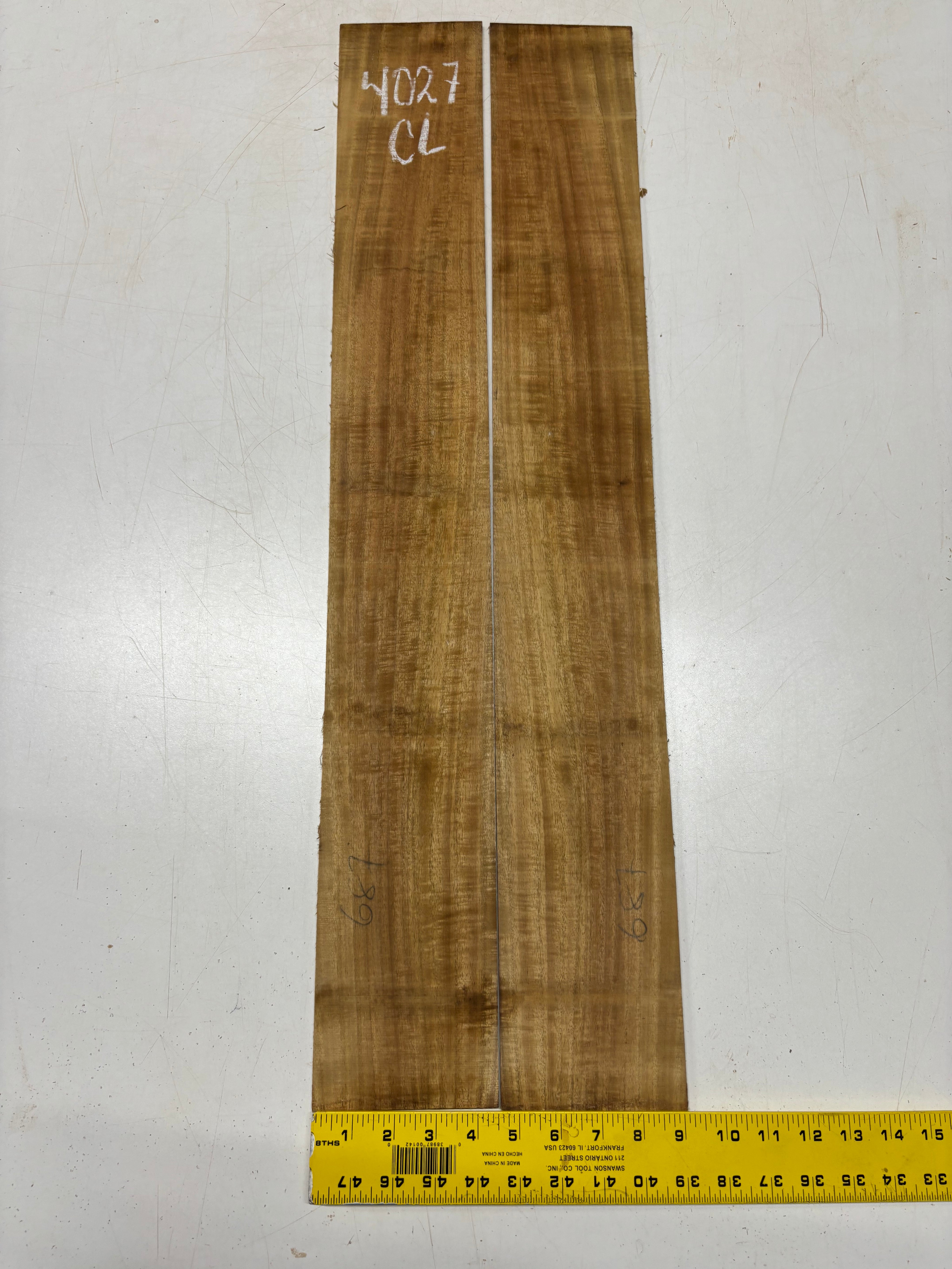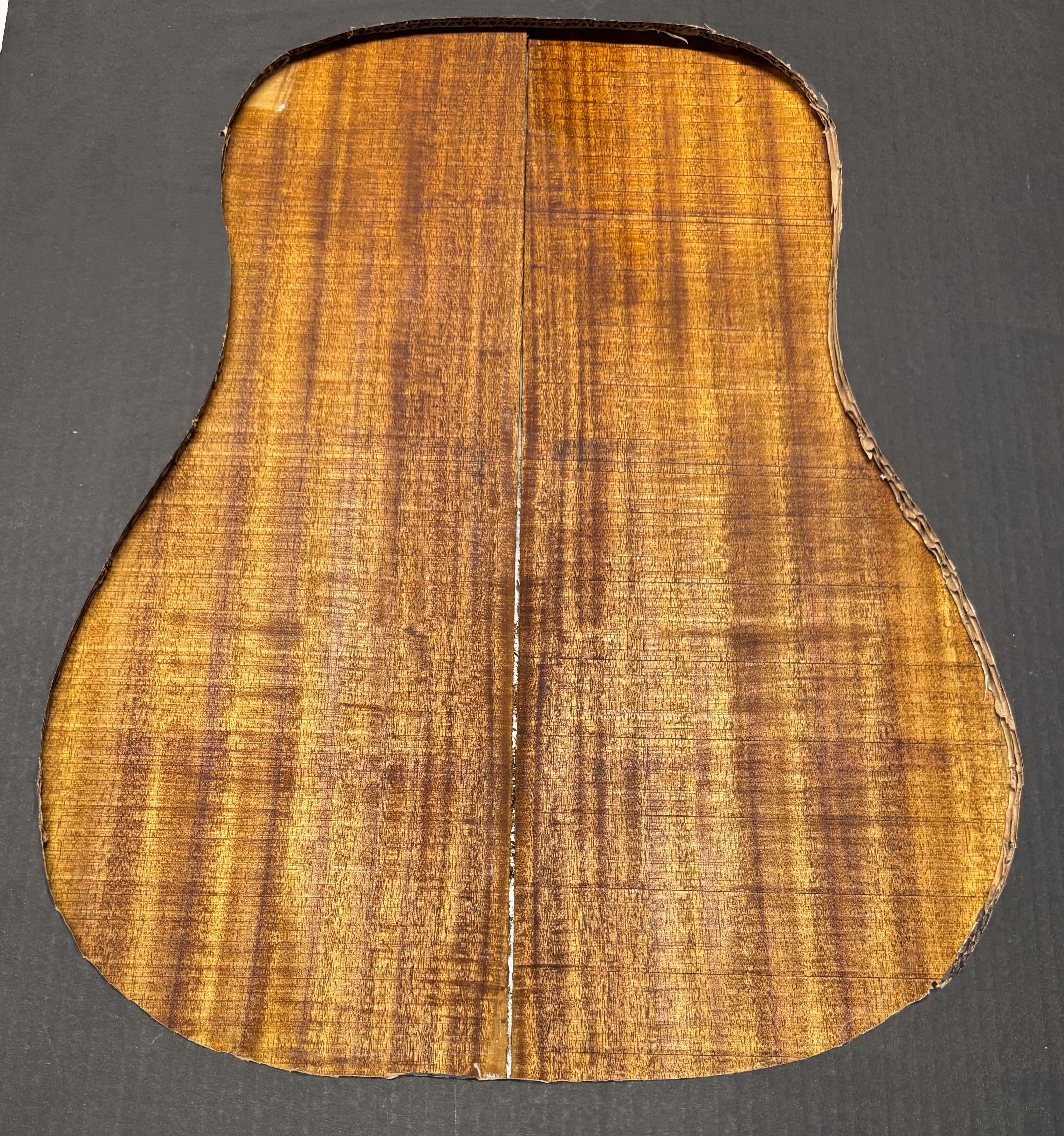 This Golden Flame Acacia Classical Guitar Back & Side Set features warm honey-brown tones with vivid flame figure that shifts beautifully in the light. Known for its balanced, clear voice and quick response, Acacia offers a tonal character similar to Hawaiian Koa with added warmth and sweetness. Ideal for luthiers crafting visually expressive and resonant classical guitars.