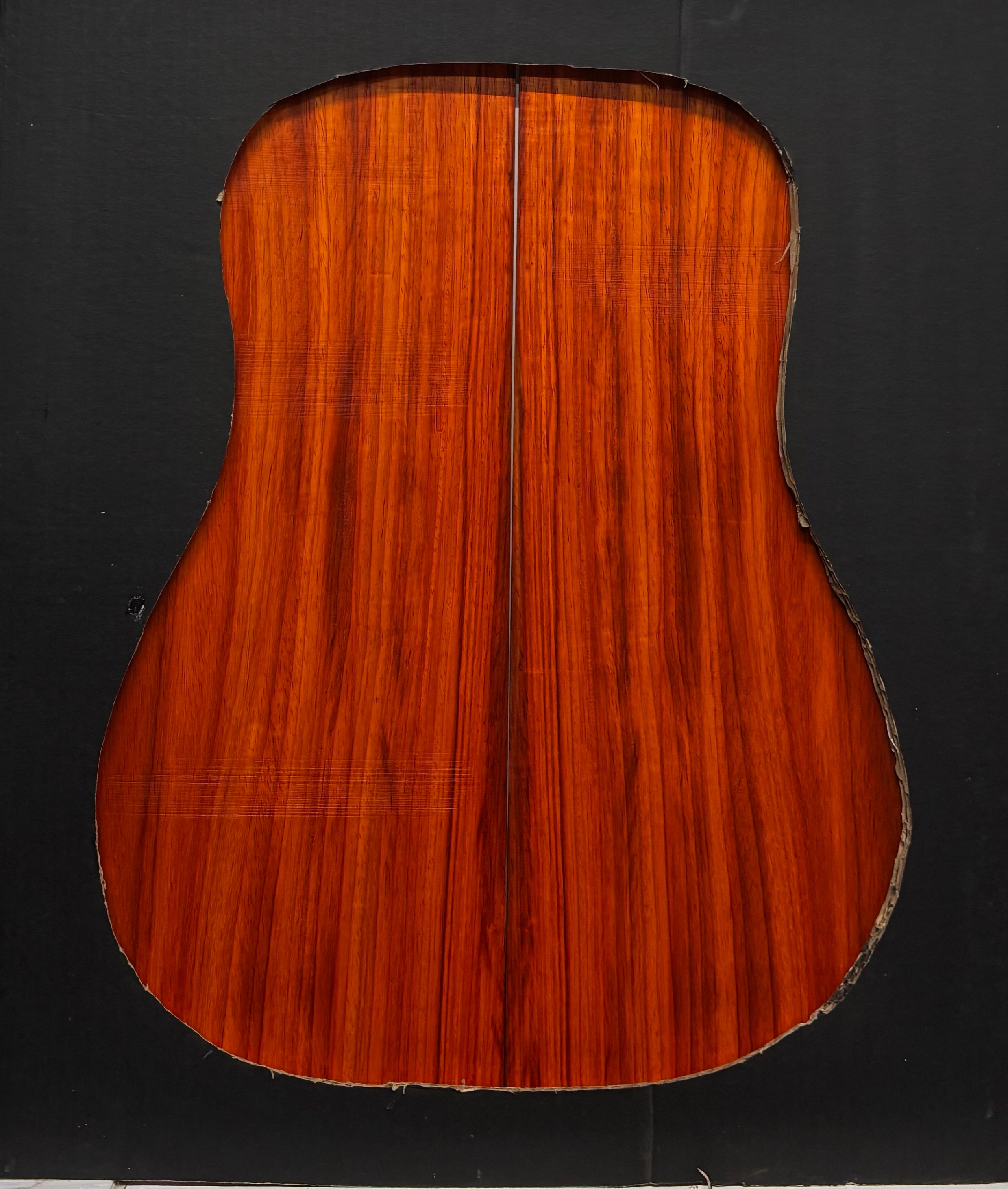 A premium Padauk dreadnought back and side set featuring vibrant reddish-orange heartwood that matures into a deep reddish-brown over time. Known for its strong projection, rich overtones, and warm low-end response, Padauk delivers tonal qualities often compared to rosewood while offering excellent stability and durability—making it a great choice for custom dreadnought guitar builds.