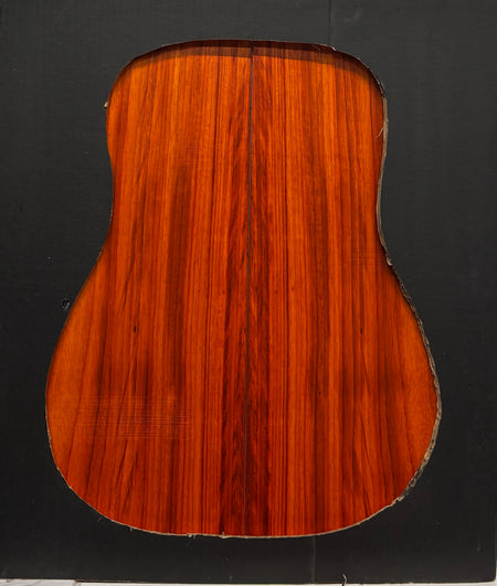 A premium Padauk dreadnought back and side set featuring vibrant reddish-orange heartwood that matures into a deep reddish-brown over time. Known for its strong projection, rich overtones, and warm low-end response, Padauk delivers tonal qualities often compared to rosewood while offering excellent stability and durability—making it a great choice for custom dreadnought guitar builds.