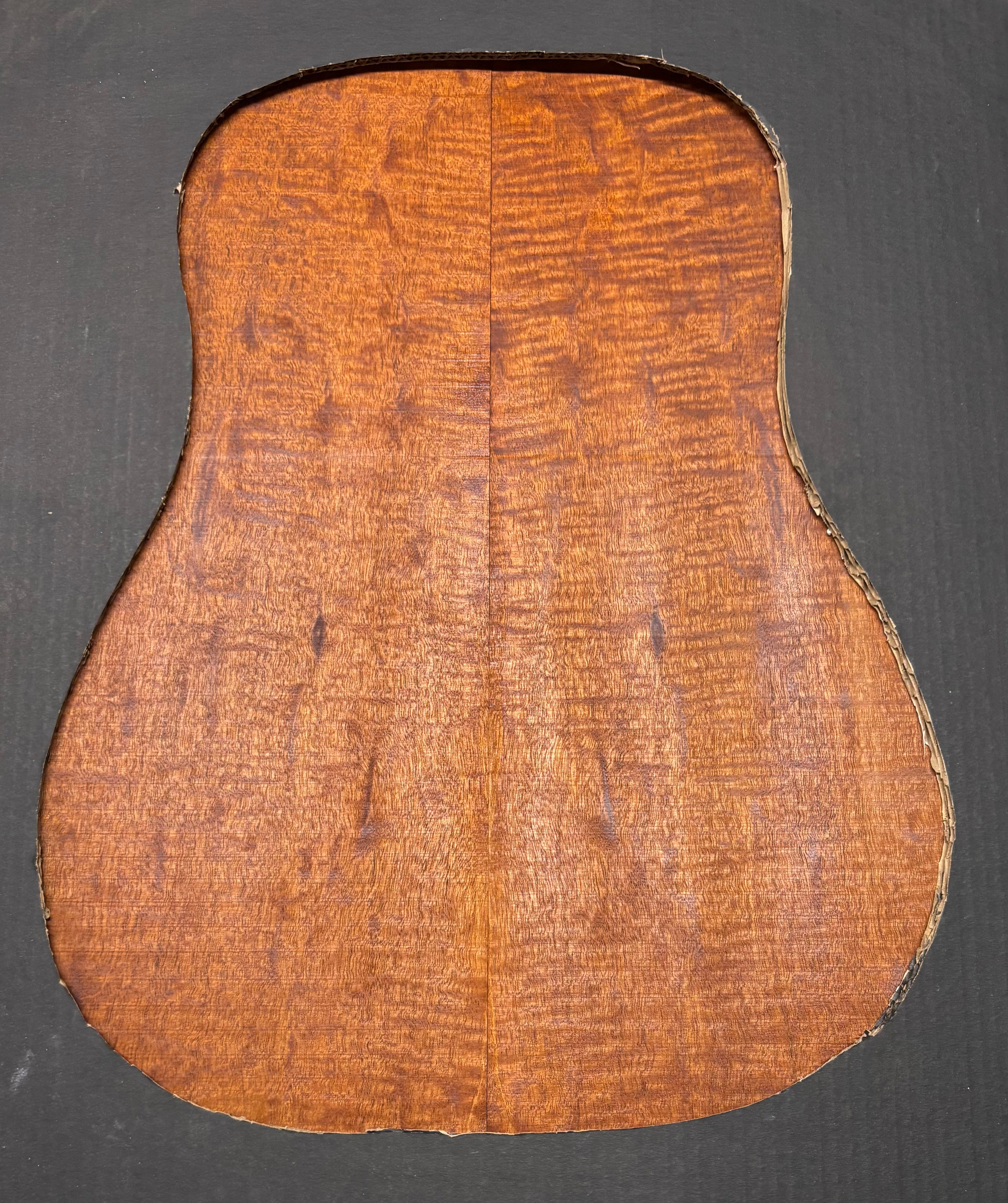 This Rare Peacock Flame Honduran Mahogany Set features a warm golden-to-reddish brown tone with shimmering ribbon and flame figure, adding depth and elegance to your guitar build. The grain is straight to slightly interlocked, offering both beauty and strength.