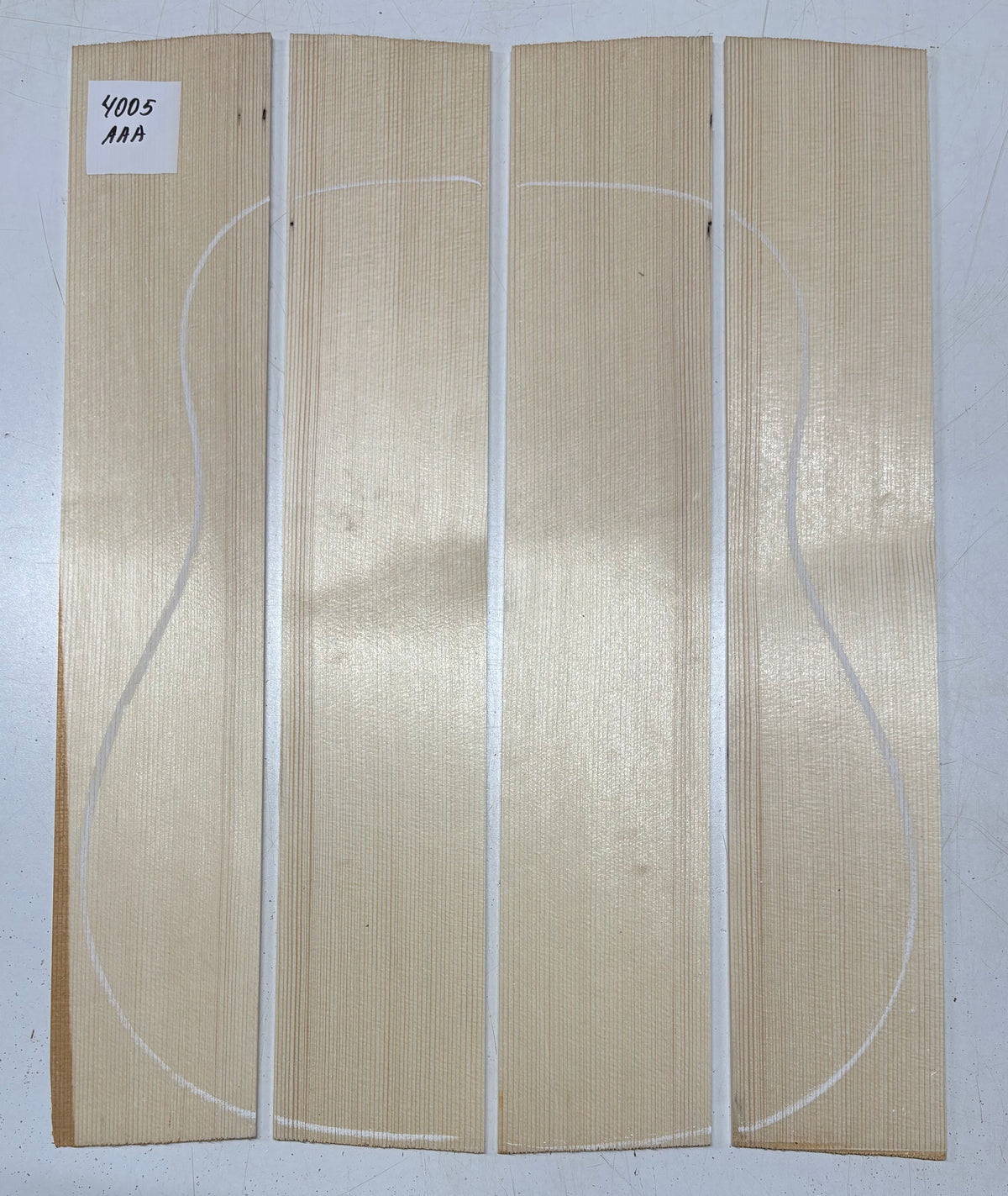 These German Spruce 4-piece bookmatched guitar tops deliver a balanced tone with clear projection and responsiveness. Known for its consistent grain and reliable stiffness, this tonewood is ideal for building quality acoustic guitars with excellent sound performance at a great value.