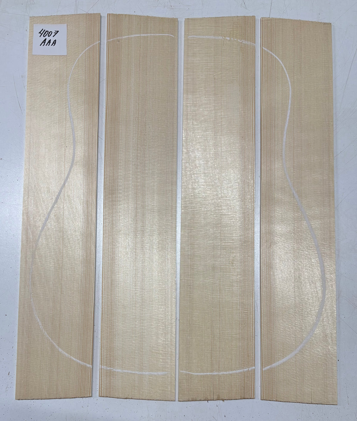 These German Spruce 4-piece bookmatched guitar tops deliver a balanced tone with clear projection and responsiveness. Known for its consistent grain and reliable stiffness, this tonewood is ideal for building quality acoustic guitars with excellent sound performance at a great value.