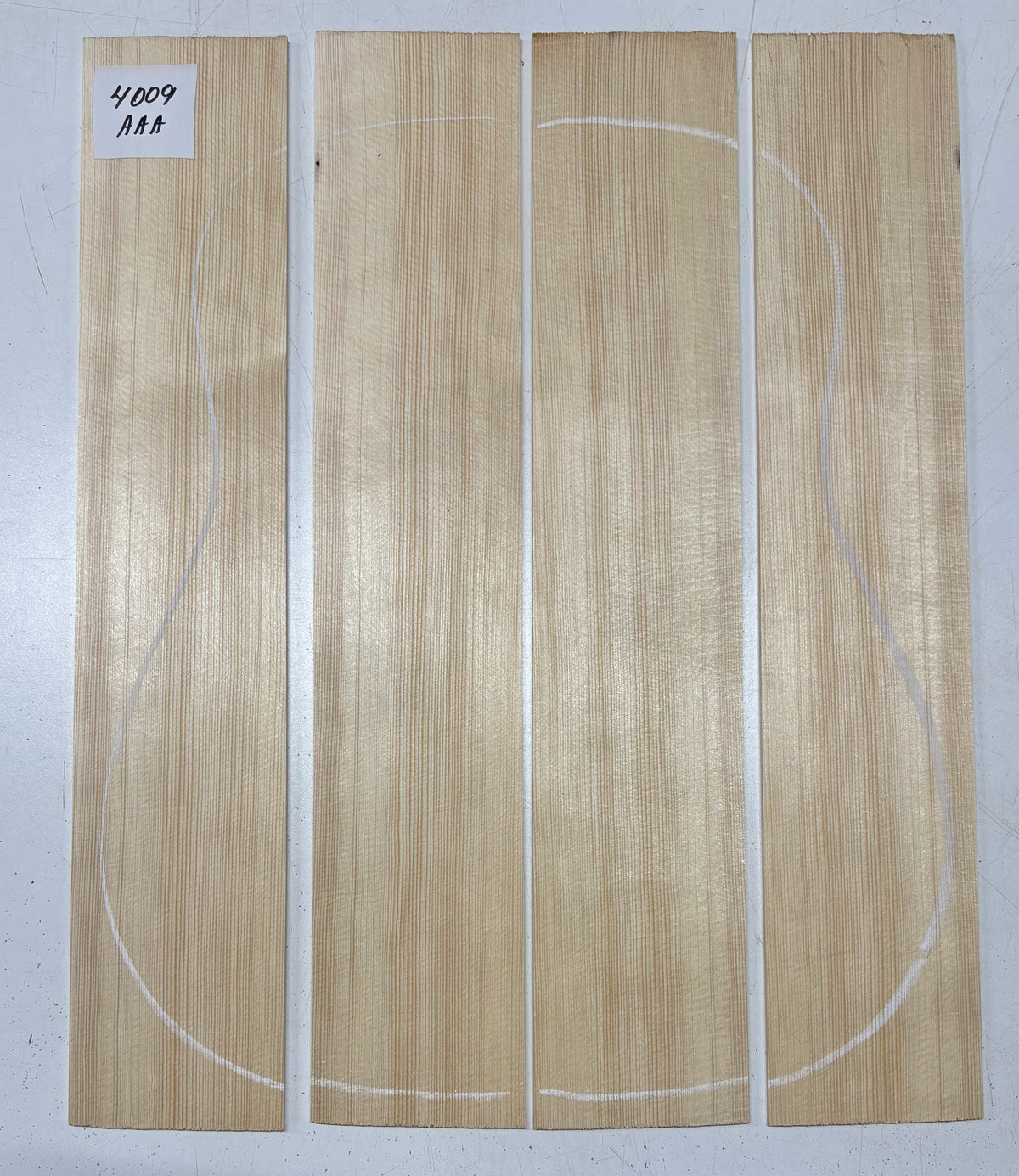 These German Spruce 4-piece bookmatched guitar tops deliver a balanced tone with clear projection and responsiveness. Known for its consistent grain and reliable stiffness, this tonewood is ideal for building quality acoustic guitars with excellent sound performance at a great value.