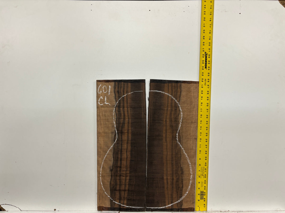 Macassar Ebony Classical Guitar Back & Side Set features dramatic black striping over golden to chocolate-brown tones, delivering a bold, high-contrast appearance prized by classical guitar builders. This dense, resonant tonewood provides crisp articulation, strong projection, and excellent sustain, making it ideal for responsive, well-defined classical instruments with a refined, professional finish.