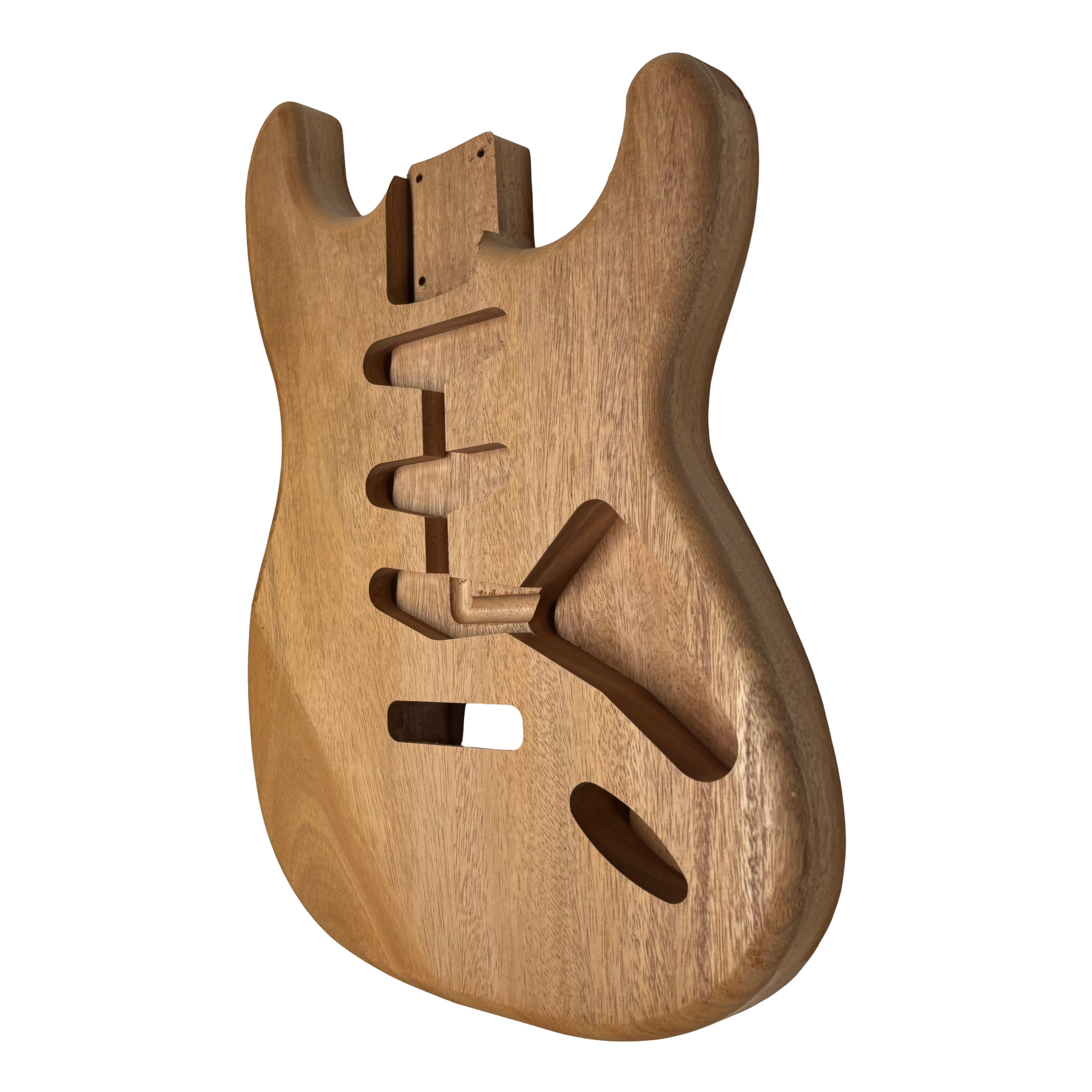 African Mahogany Stratocaster® Style Guitar Body – Pre-Routed, S/S/S Configuration – Unfinished DIY Build