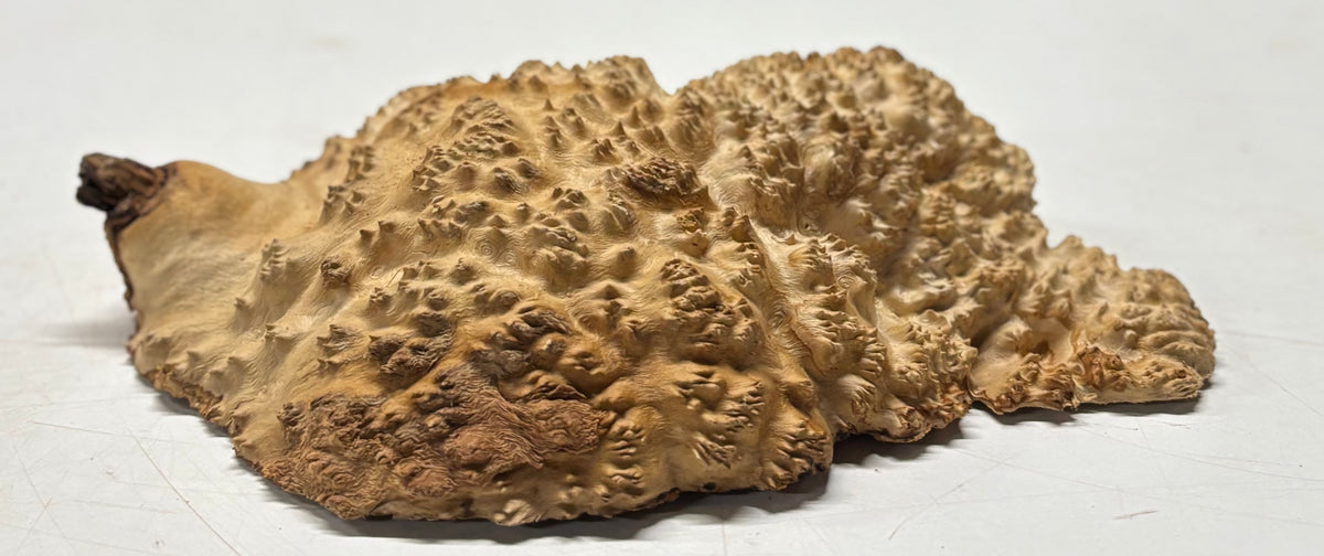 Brown Mallee Burl Blank features dramatic swirling grain, rich chocolate-brown tones, and natural burl eyes that make every piece truly one of a kind. Dense and durable, this exotic hardwood blank is ideal for woodturning, knife handles, pen blanks, resin hybrid projects, and custom woodworking creations. Carefully cut dried for stability, it machines smoothly and finishes beautifully, delivering a stunning high-gloss polish that highlights its unique figure. Perfect for artisans seeking premium burl wood with exceptional character and visual depth.