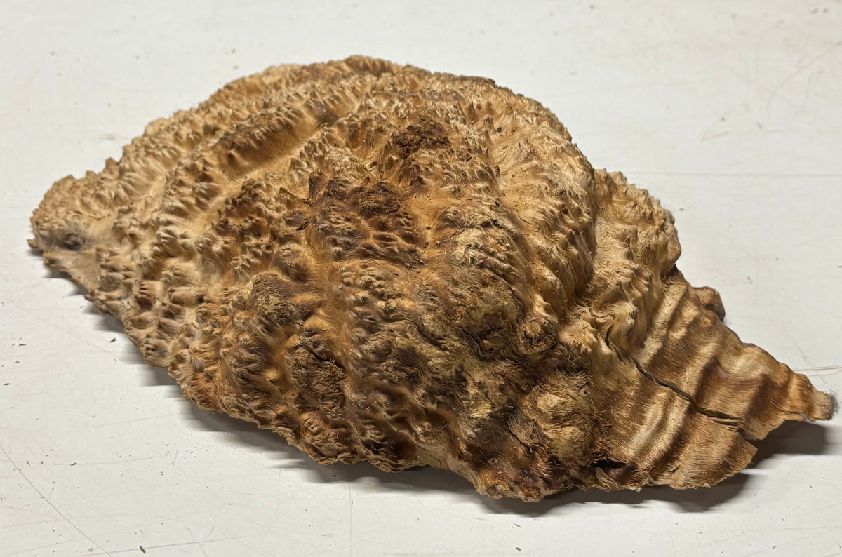 Brown Mallee Burl Blank features dramatic swirling grain, rich chocolate-brown tones, and natural burl eyes that make every piece truly one of a kind. Dense and durable, this exotic hardwood blank is ideal for woodturning, knife handles, pen blanks, resin hybrid projects, and custom woodworking creations. Carefully cut dried for stability, it machines smoothly and finishes beautifully, delivering a stunning high-gloss polish that highlights its unique figure. Perfect for artisans seeking premium burl wood with exceptional character and visual depth.