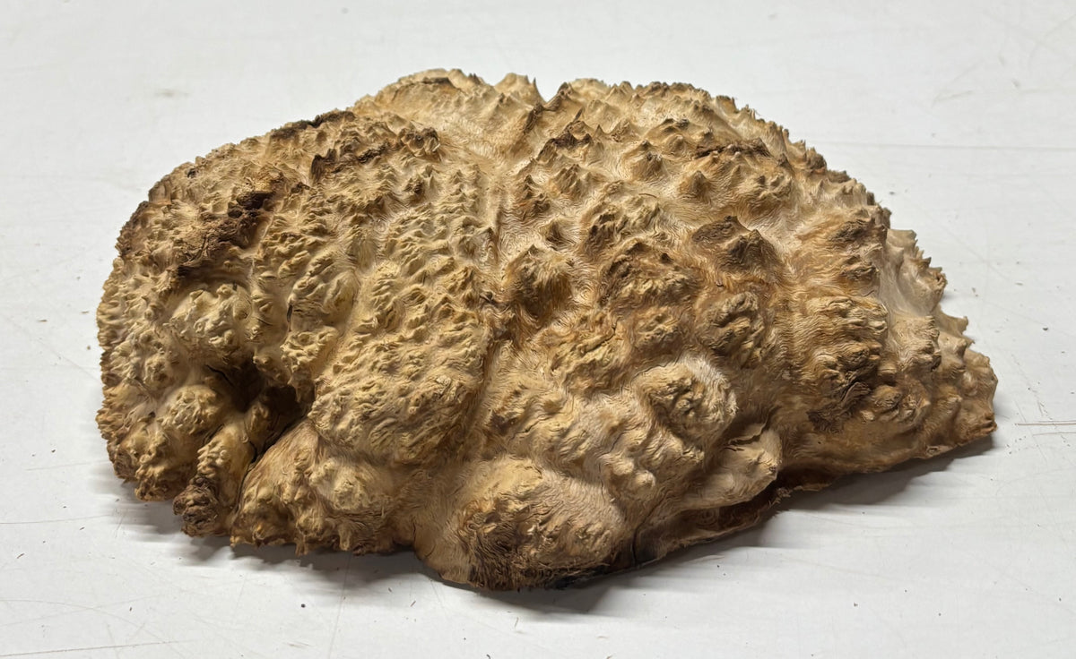 Brown Mallee Burl Blank features dramatic swirling grain, rich chocolate-brown tones, and natural burl eyes that make every piece truly one of a kind. Dense and durable, this exotic hardwood blank is ideal for woodturning, knife handles, pen blanks, resin hybrid projects, and custom woodworking creations. Carefully cut dried for stability, it machines smoothly and finishes beautifully, delivering a stunning high-gloss polish that highlights its unique figure. Perfect for artisans seeking premium burl wood with exceptional character and visual depth.