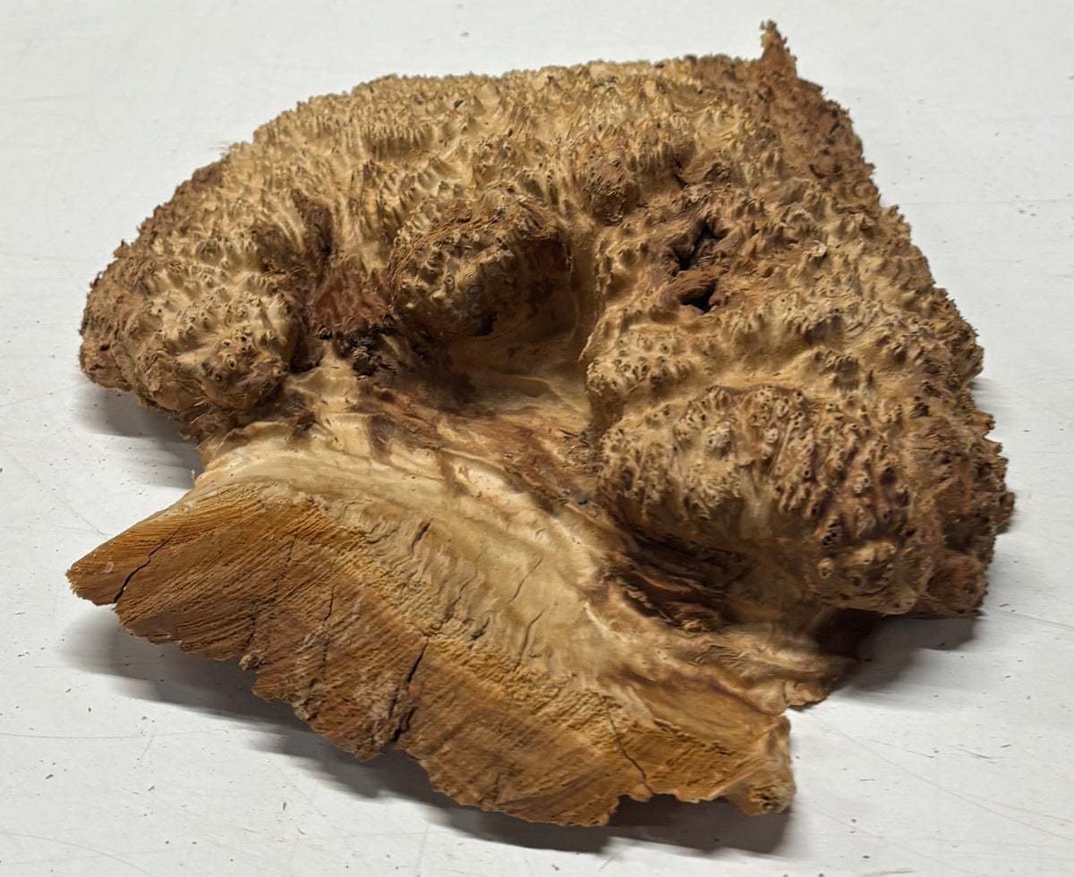 Brown Mallee Burl Blank features dramatic swirling grain, rich chocolate-brown tones, and natural burl eyes that make every piece truly one of a kind. Dense and durable, this exotic hardwood blank is ideal for woodturning, knife handles, pen blanks, resin hybrid projects, and custom woodworking creations. Carefully cut dried for stability, it machines smoothly and finishes beautifully, delivering a stunning high-gloss polish that highlights its unique figure. Perfect for artisans seeking premium burl wood with exceptional character and visual depth.