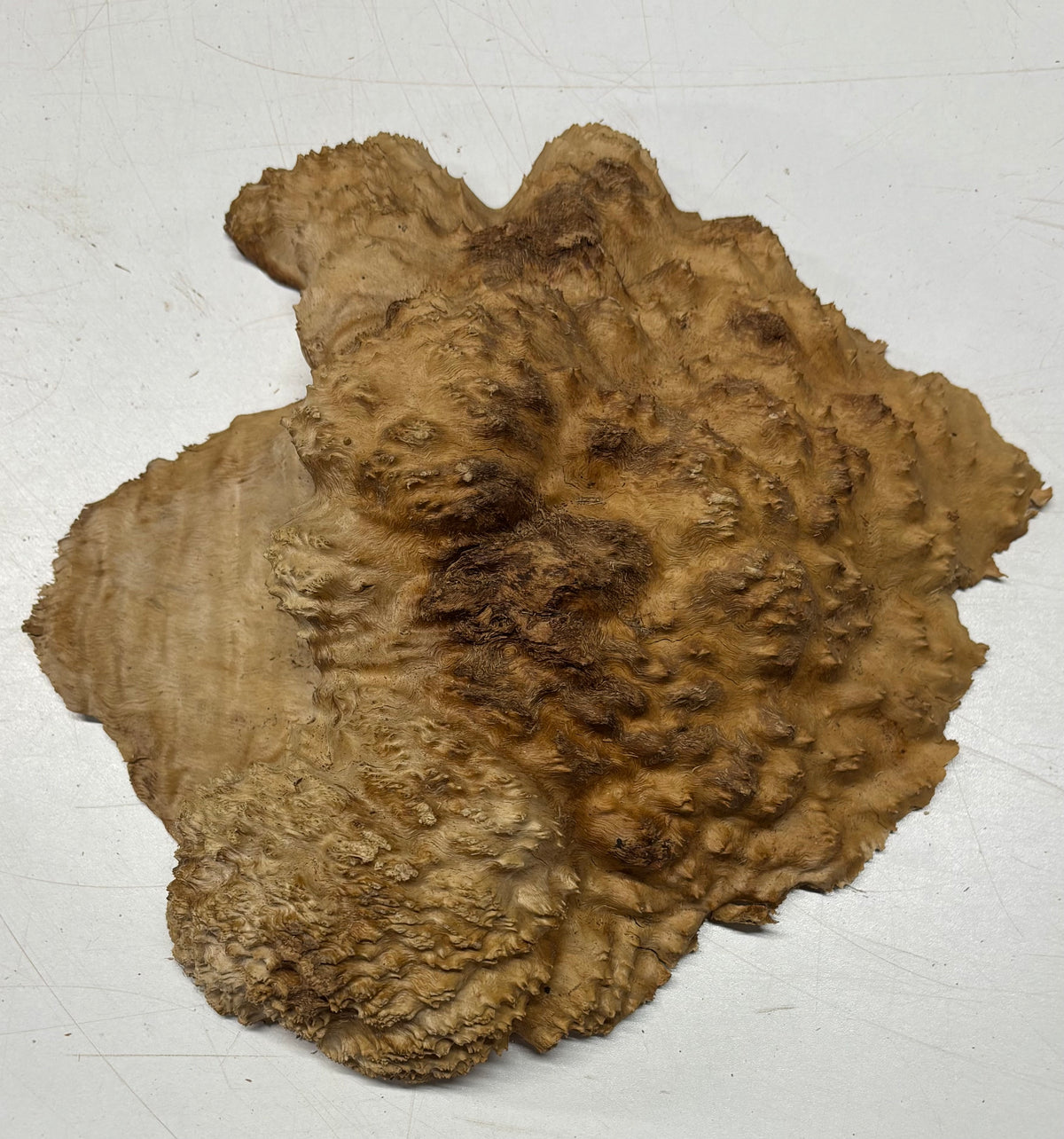 Brown Mallee Burl Blank features dramatic swirling grain, rich chocolate-brown tones, and natural burl eyes that make every piece truly one of a kind. Dense and durable, this exotic hardwood blank is ideal for woodturning, knife handles, pen blanks, resin hybrid projects, and custom woodworking creations. Carefully cut dried for stability, it machines smoothly and finishes beautifully, delivering a stunning high-gloss polish that highlights its unique figure. Perfect for artisans seeking premium burl wood with exceptional character and visual depth.