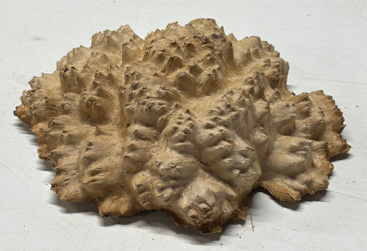Brown Mallee Burl Blank features dramatic swirling grain, rich chocolate-brown tones, and natural burl eyes that make every piece truly one of a kind. Dense and durable, this exotic hardwood blank is ideal for woodturning, knife handles, pen blanks, resin hybrid projects, and custom woodworking creations. Carefully cut and kiln-dried for stability, it machines smoothly and finishes beautifully, delivering a stunning high-gloss polish that highlights its unique figure. Perfect for artisans seeking premium burl wood with exceptional character and visual depth.