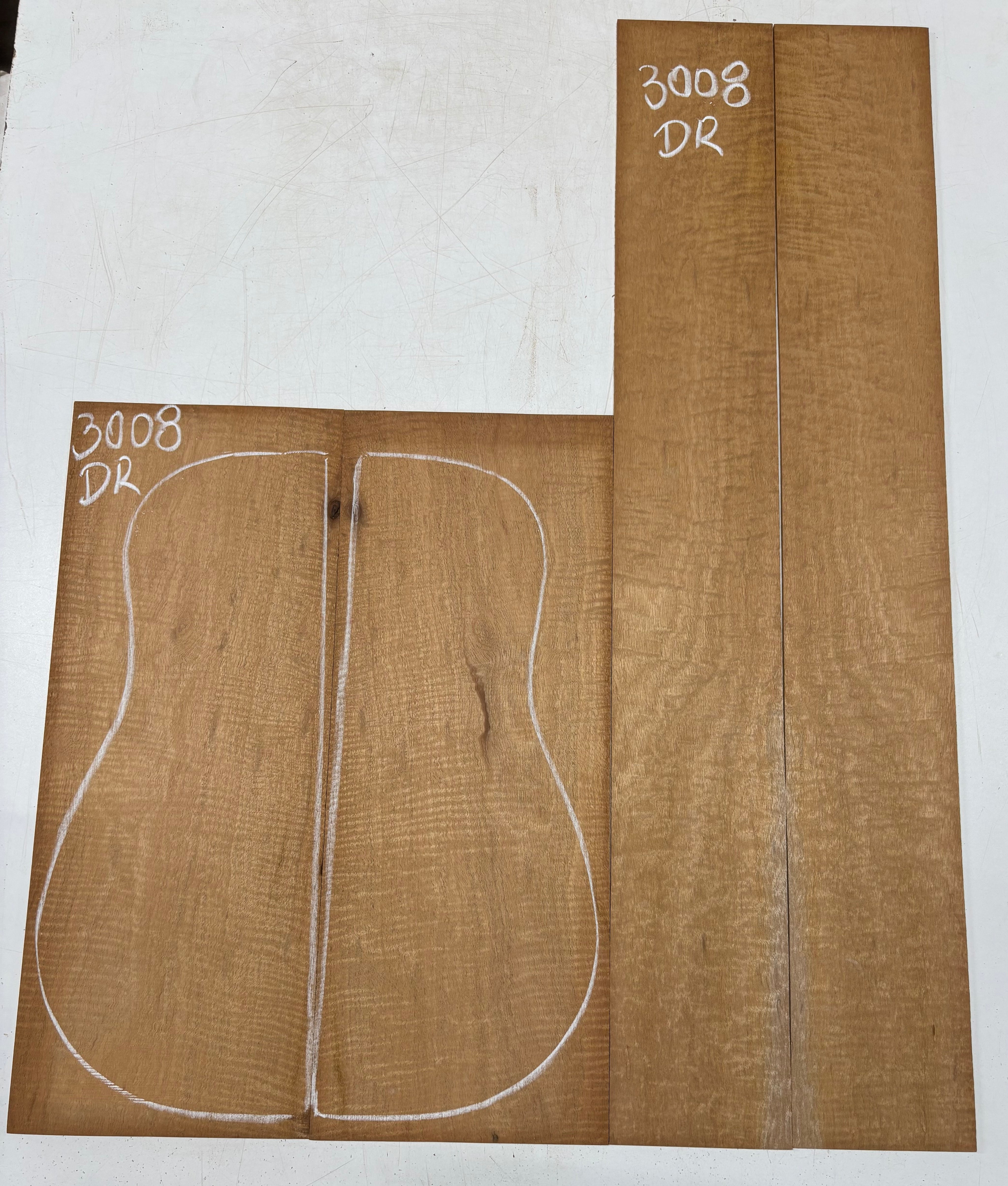 This Curly Flame Honduran Mahogany set showcases stunning rippled figure with warm reddish-brown hues, making it a premium choice for dreadnought builds that demand both beauty and tone. Known for its balanced voice, it delivers clear mids, warm lows, and smooth, open projection — ideal for rich acoustic resonance. Lightweight, stable, and easy to work with, this tonewood bends cleanly, machines beautifully, and finishes to a glowing, high-end luster. Perfect for custom luthiers seeking visual flair and classic mahogany warmth.