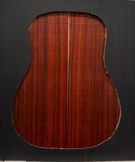 A premium Padauk dreadnought back and side set featuring vibrant reddish-orange heartwood that matures into a deep reddish-brown over time. Known for its strong projection, rich overtones, and warm low-end response, Padauk delivers tonal qualities often compared to rosewood while offering excellent stability and durability—making it a great choice for custom dreadnought guitar builds.
