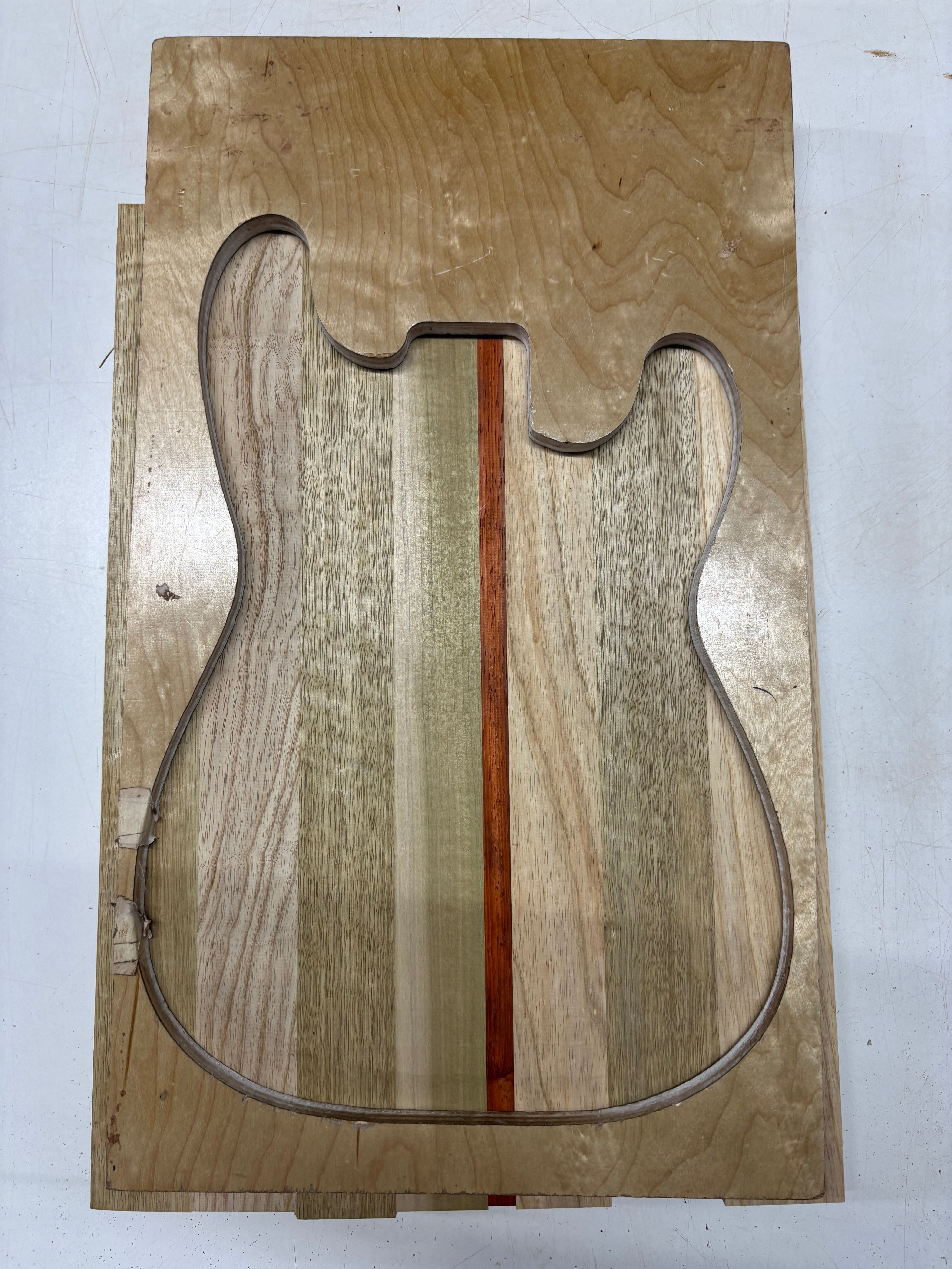 8 Piece, Glued 4 Species White Limba+ Swamp Ash+ Poplar + Padauk Body Blank 20-1/2"x15"x1-7/8" #6371