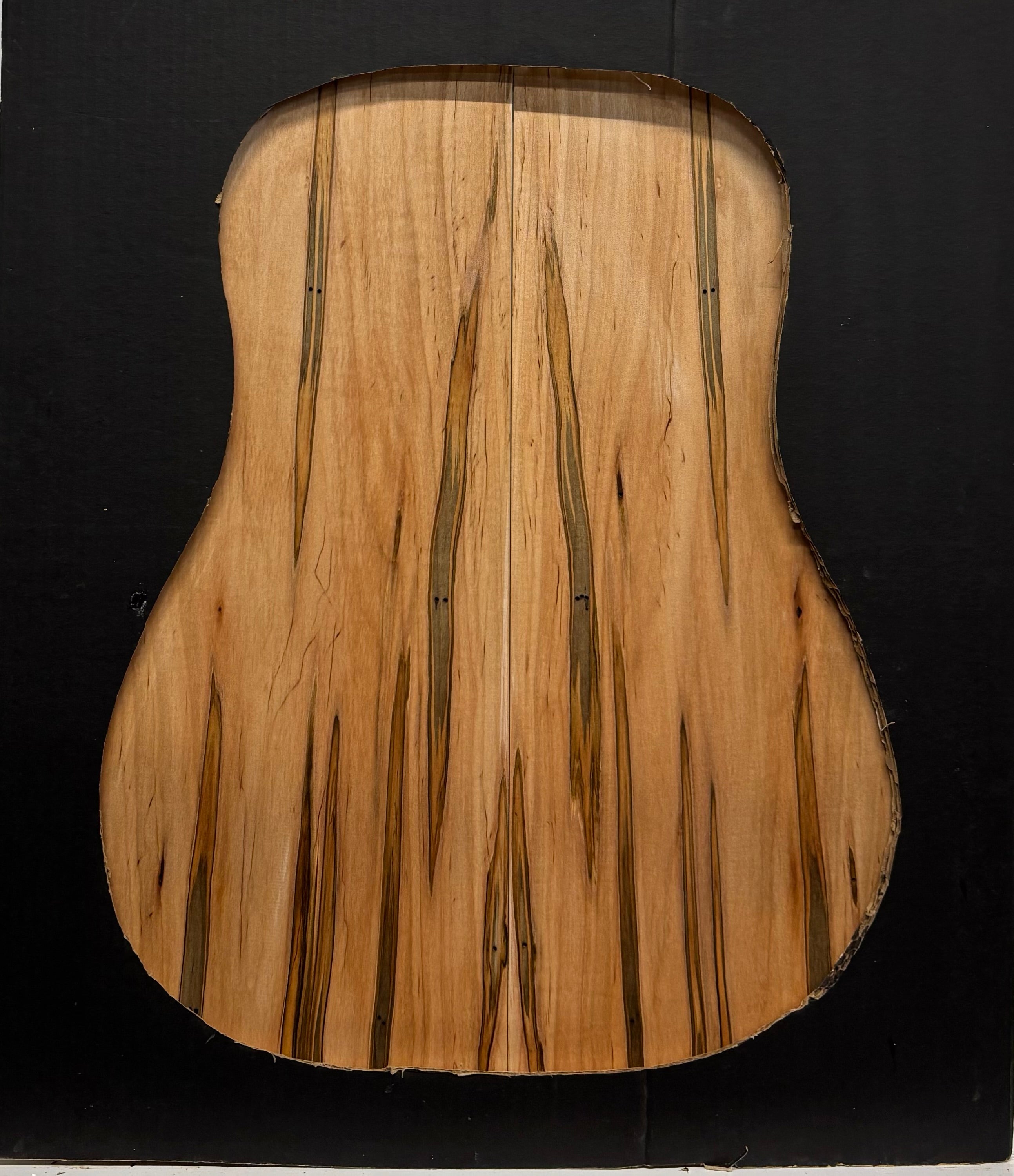This Ambrosia Maple dreadnought guitar back and side set features striking natural spalting with dramatic color contrasts and unique grain patterns. Known for its bright, clear tone and strong note separation, Ambrosia Maple delivers excellent projection with a lively, responsive feel—ideal for fingerstyle and light strumming. Carefully selected and well-seasoned, this set offers both visual character and reliable stability for custom acoustic guitar builds.