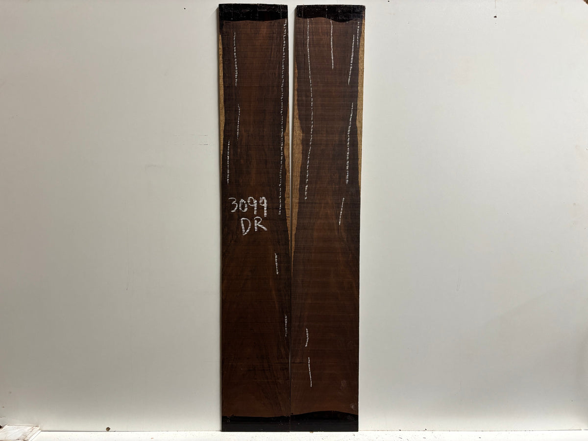 Crafted from dense and visually striking Amazon Rosewood, this side set features dark brown to purplish hues with dramatic grain lines. Graded as "Seconds," it may include minor cosmetic flaws such as pinholes or grain irregularities, but it retains the tone-rich qualities Amazon Rosewood is known for—powerful lows, clear highs, and excellent sustain. Perfect for dreadnought builds with character and depth.