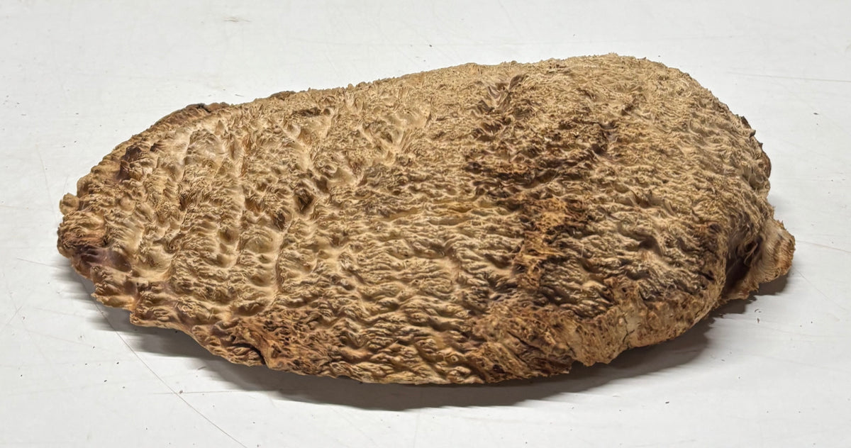 Brown Mallee Burl Blank features dramatic swirling grain, rich chocolate-brown tones, and natural burl eyes that make every piece truly one of a kind. Dense and durable, this exotic hardwood blank is ideal for woodturning, knife handles, pen blanks, resin hybrid projects, and custom woodworking creations. Carefully cut dried for stability, it machines smoothly and finishes beautifully, delivering a stunning high-gloss polish that highlights its unique figure. Perfect for artisans seeking premium burl wood with exceptional character and visual depth.