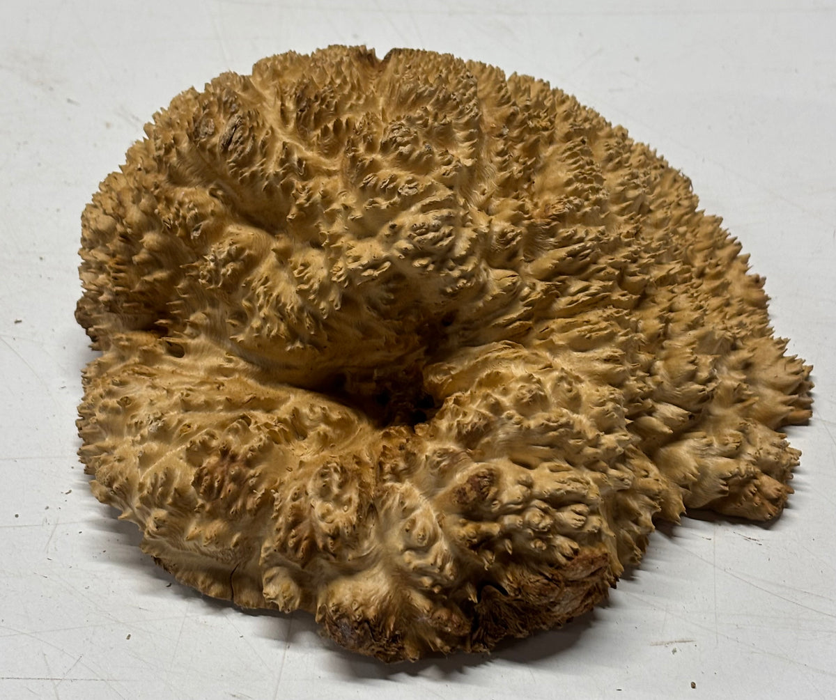 Brown Mallee Burl Blank features dramatic swirling grain, rich chocolate-brown tones, and natural burl eyes that make every piece truly one of a kind. Dense and durable, this exotic hardwood blank is ideal for woodturning, knife handles, pen blanks, resin hybrid projects, and custom woodworking creations. Carefully cut and kiln-dried for stability, it machines smoothly and finishes beautifully, delivering a stunning high-gloss polish that highlights its unique figure. Perfect for artisans seeking premium burl wood with exceptional character and visual depth.