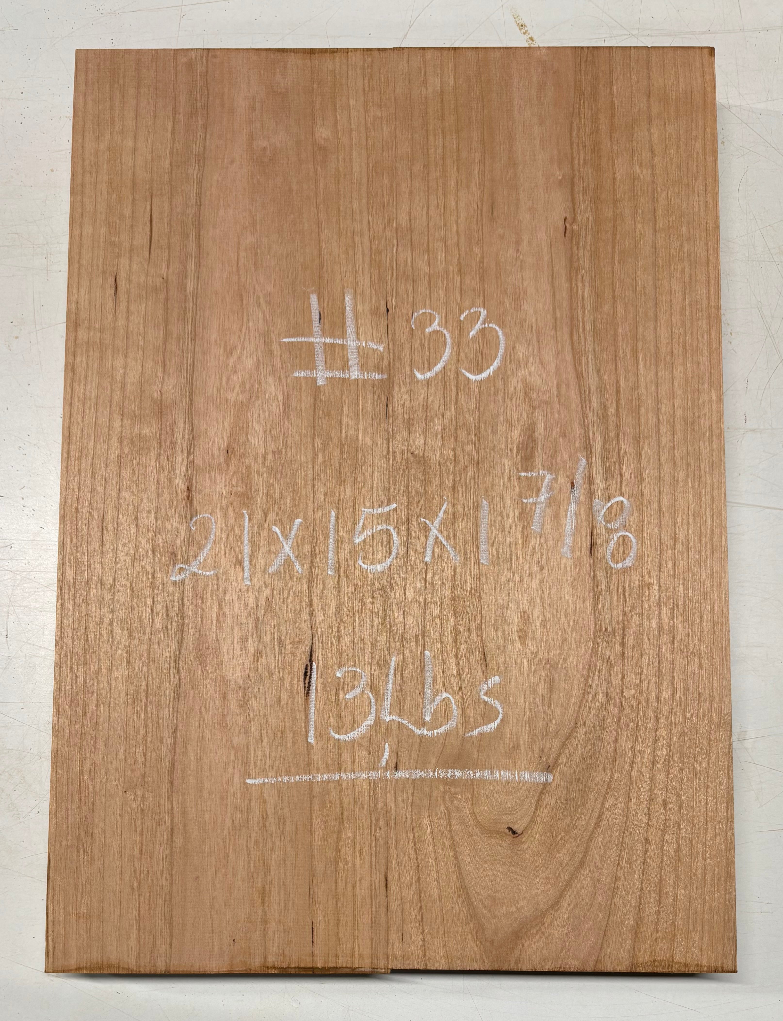 Cherry Guitar Body Blank - 21" x 15" x 1-7/8" (2 Pcs Glued) #33