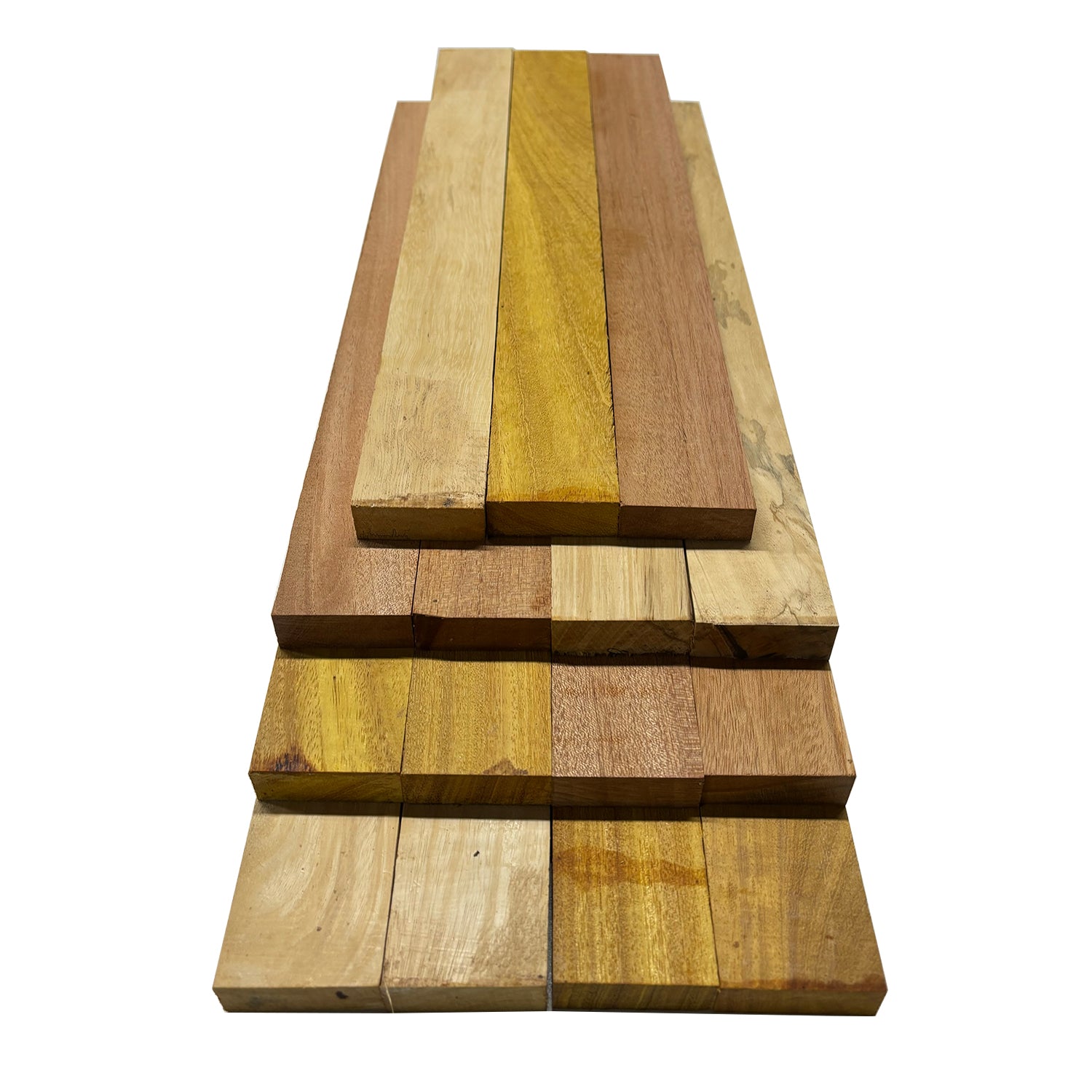 Combo of 15 , 3/4" Lumber Boards | Cutting Board Blocks | Osage Orange, Mahogany, Yellow Tamarind
