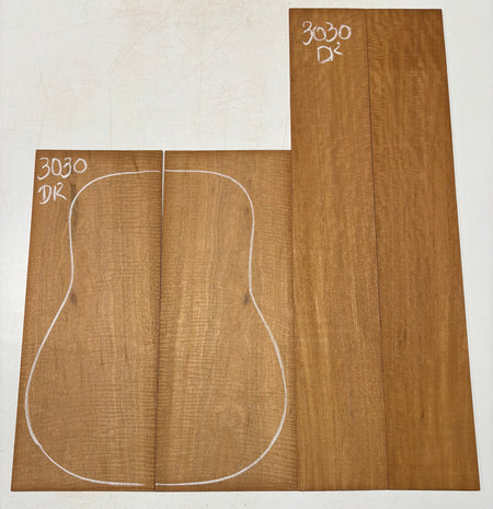 Curly Flame Honduran Mahogany Dreadnought Guitar Back & Side Set #3030