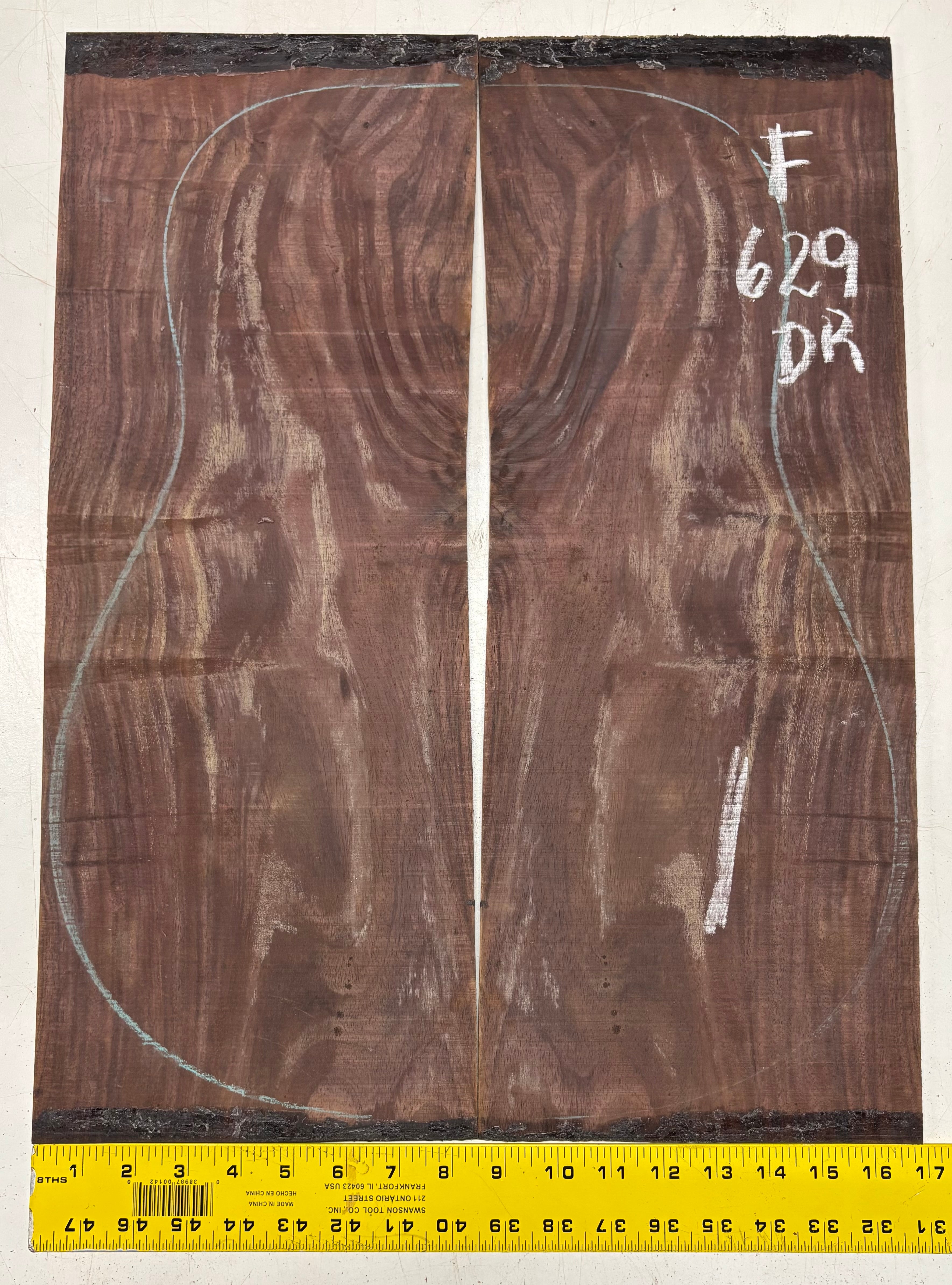 Figured Indian Rosewood Dreadnought Guitar Back Set (22" x 8-1/4" x 3/16")- Seconds #629