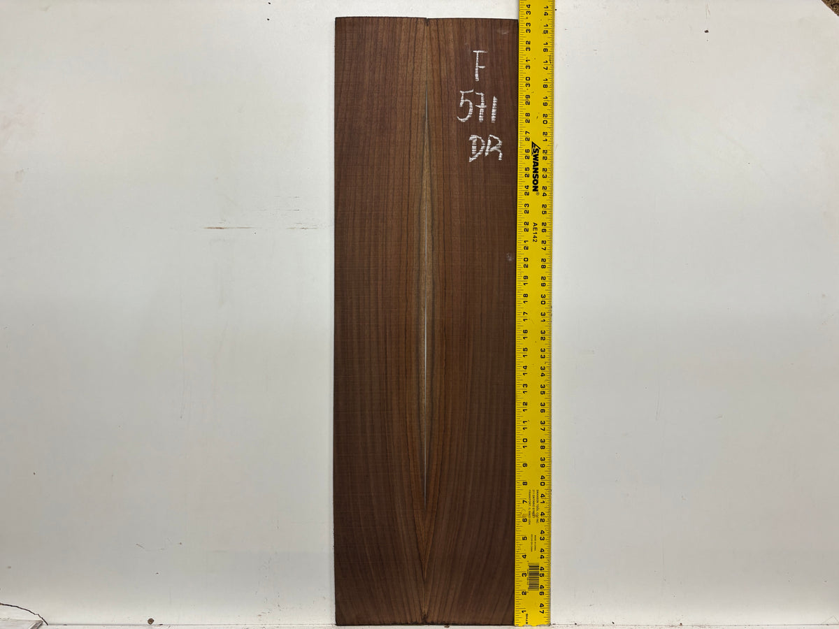 A premium Figured Indian Rosewood Dreadnought Back and Side Set featuring striking grain patterns and rich tonal warmth, ideal for building high-end dreadnought guitars. This set offers excellent resonance, deep bass response, and visual beauty, making it perfect for luthiers and guitar builders seeking quality Indian Rosewood with figured aesthetics.