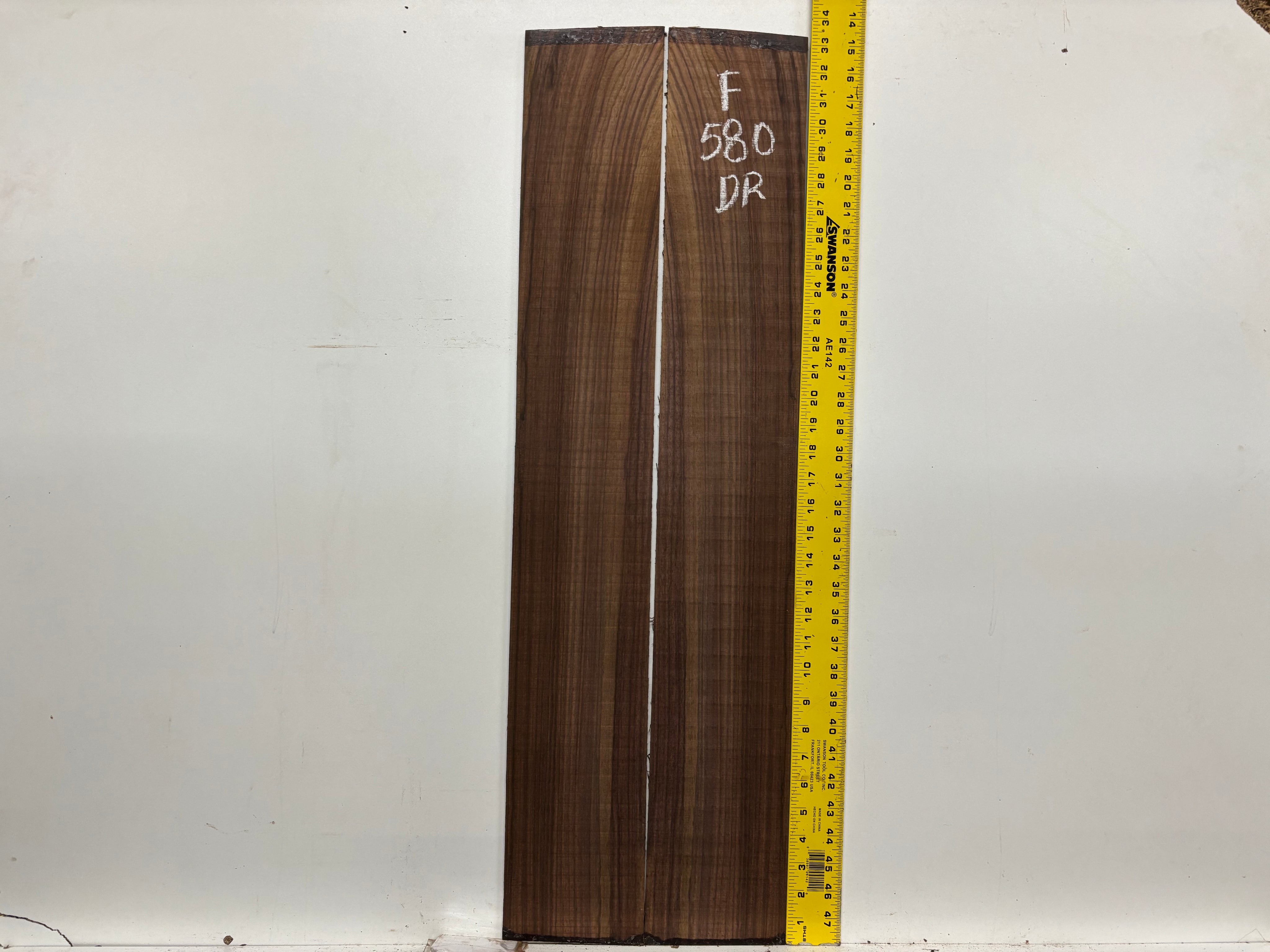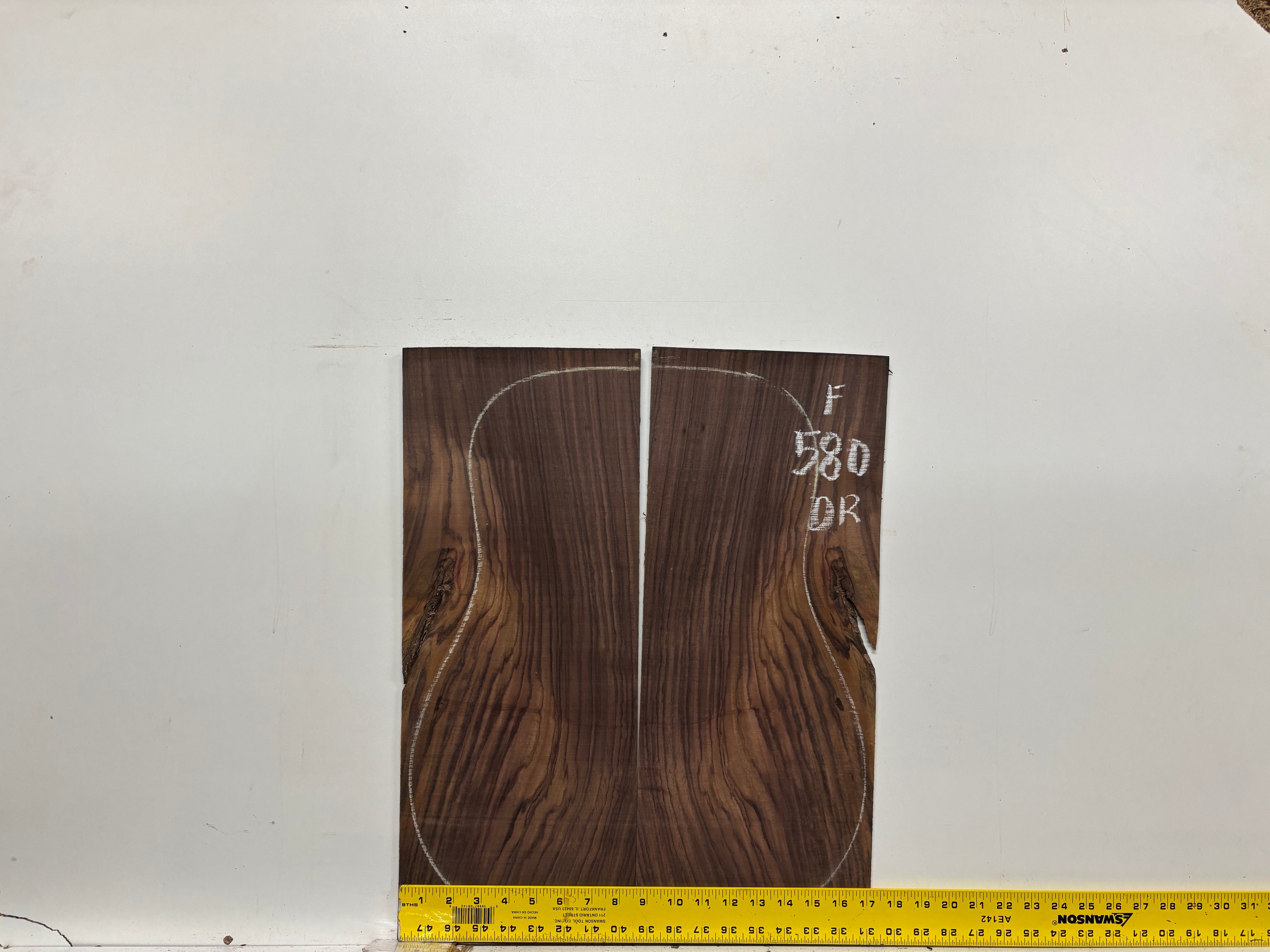 A premium Figured Indian Rosewood Dreadnought Back and Side Set featuring striking grain patterns and rich tonal warmth, ideal for building high-end dreadnought guitars. This set offers excellent resonance, deep bass response, and visual beauty, making it perfect for luthiers and guitar builders seeking quality Indian Rosewood with figured aesthetics.