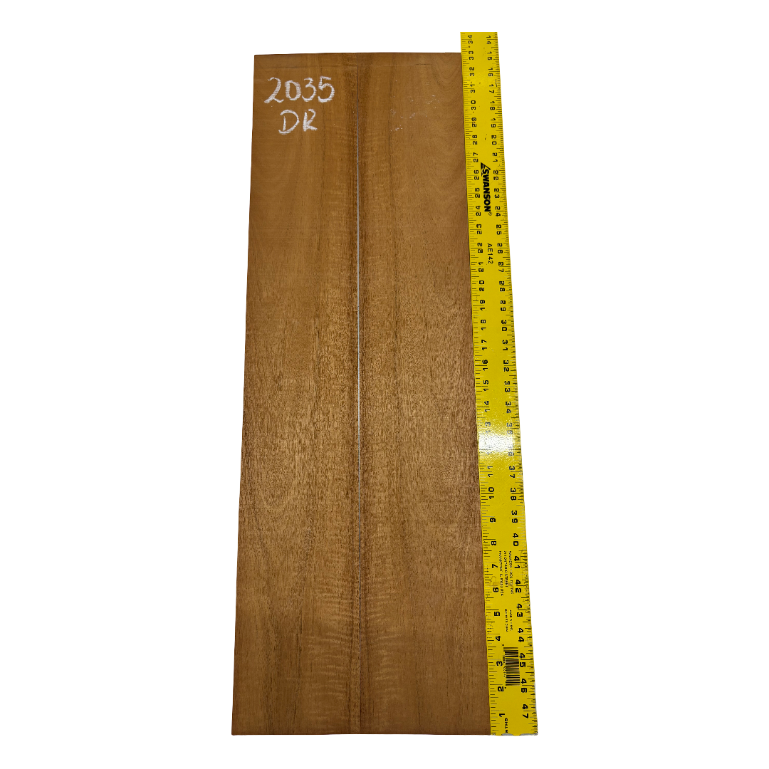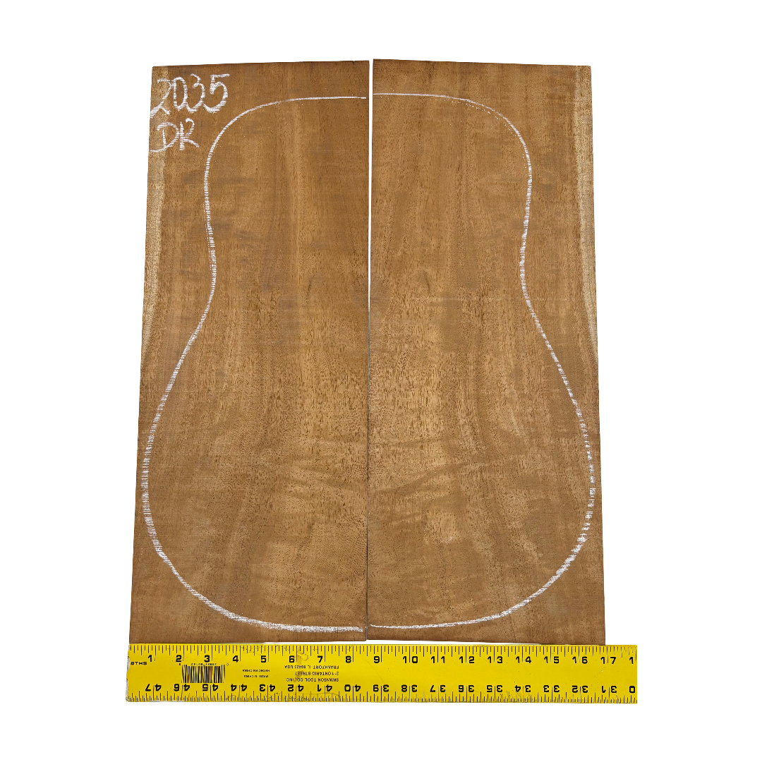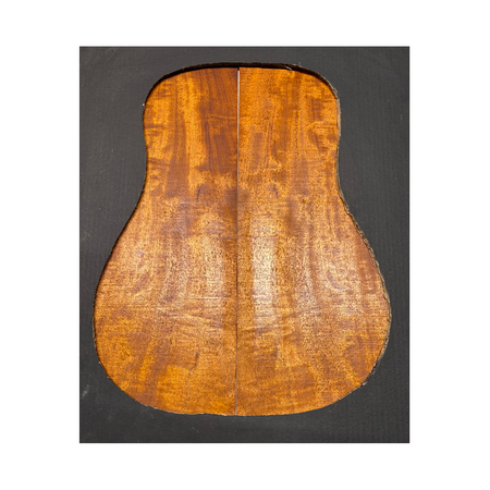This Highly Figured Waterfall Flame Honduran Mahogany Dreadnought Guitar Back & Side Set features a stunning interlocked grain with mesmerizing waterfall flame figure that ripples beautifully across the surface. The rich reddish-brown heartwood displays golden chatoyance and depth, making each set visually striking and unique. Known for its warm, balanced tone with rich mids and smooth lows, Honduran Mahogany remains a timeless favorite for premium acoustic guitars.